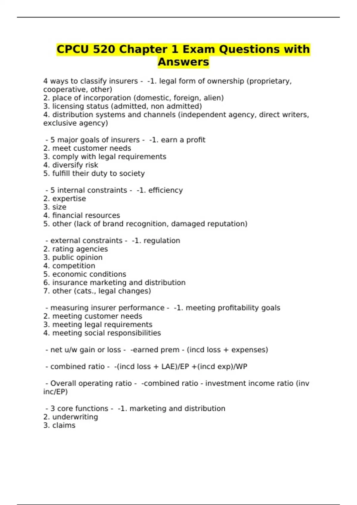 CPCU 520 Chapter 1 Exam Questions with Answers