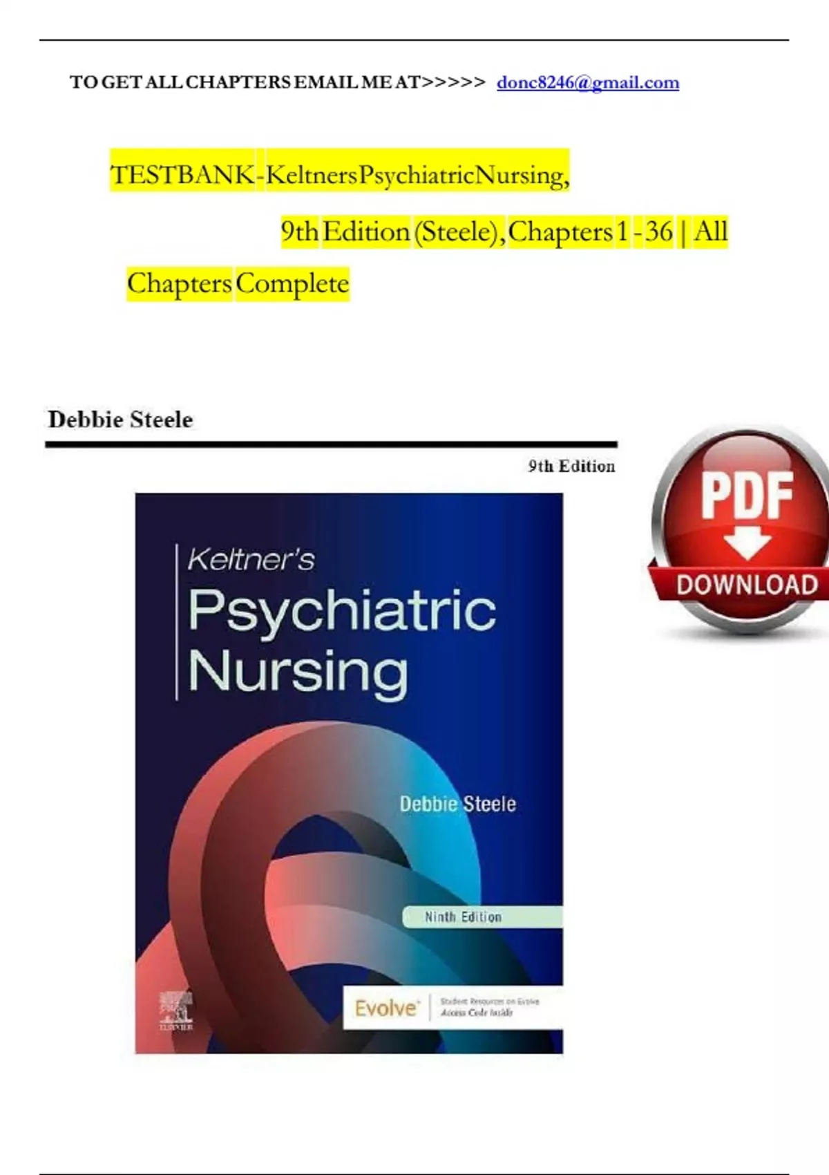 Test Bank for Keltner’s Psychiatric Nursing, 9th Edition by Debbie Steele |Chapter 1-36 | All Chapters , 100% VERIFIED A+