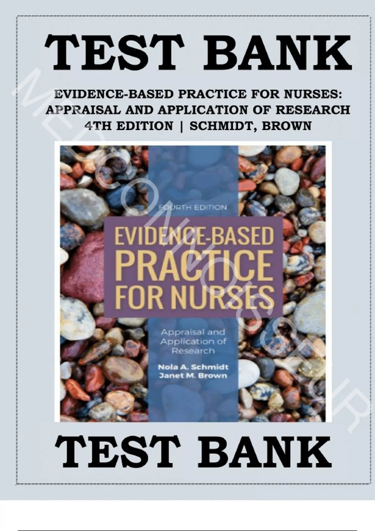 Test Bank For Evidence-Based Practice for Nurses: Appraisal and Application of Research 4th Edition by Schmidt, Brown Table of Contents: Chapter 1 What Is Evidence-Based Practice? Chapter 2 Using Evidence Through Collaboration To Promote Excellence In Nursing Practice Chapter 3 Identifying Research Questions Chapter 4 Finding Sources Of Evidence Chapter 5 Linking Theory, Research, And Practice Chapter 6 Key Principles Of Quantitative Designs Chapter 7 Quantitative Designs: Using Numbers To Provide Evidence Chapter 8 Epidemiologic Designs: Using Data To Understand Populations Chapter 9 Qualitative Designs: Using Words To Provide Evidence Chapter 10 Collecting Evidence Chapter 11 Using Samples To Provide Evidence Chapter 12 Other Sources Of Evidence Chapter 13 What Do The Quantitative Data Mean? Chapter 14 What Do The Qualitative Data Mean? Chapter 15 Weighing In On The Evidence Chapter 16 Transitioning Evidence To Practice Chapter 17 Developing Oneself As An Innovator Chapter 18 Evaluating Outcomes Of Innovations Chapter 19 Sharing The Insights With Others