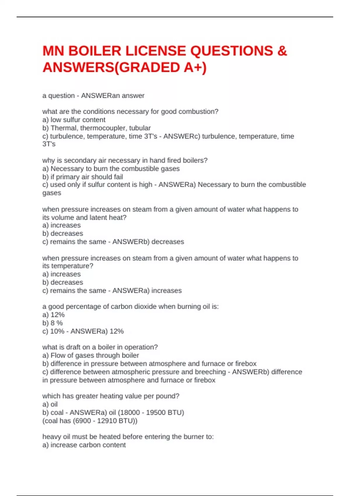 MN BOILER LICENSE QUESTIONS & ANSWERS(GRADED A+)