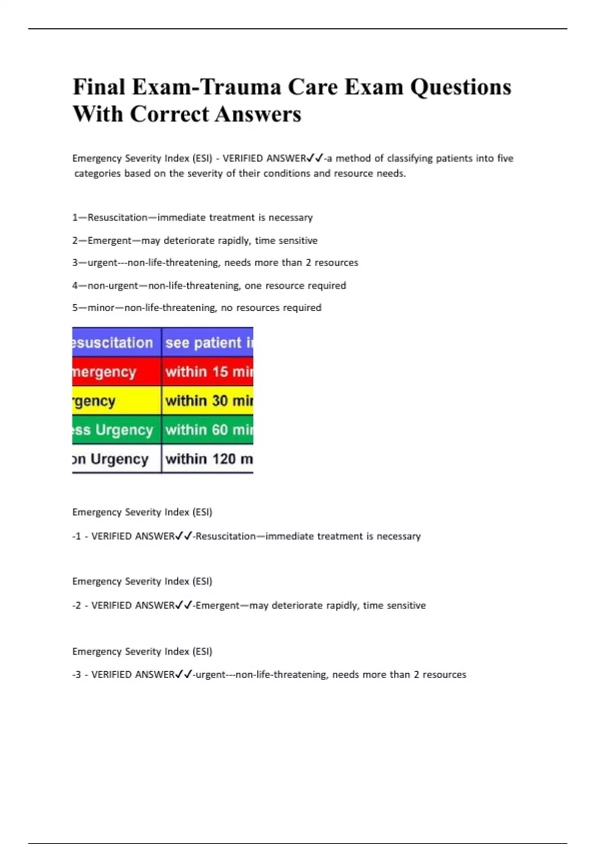 Emergency |Severity |Index |(ESI) |- |VERIFIED |ANSWER✔✔-a |method |of |classifying |patients |into |five