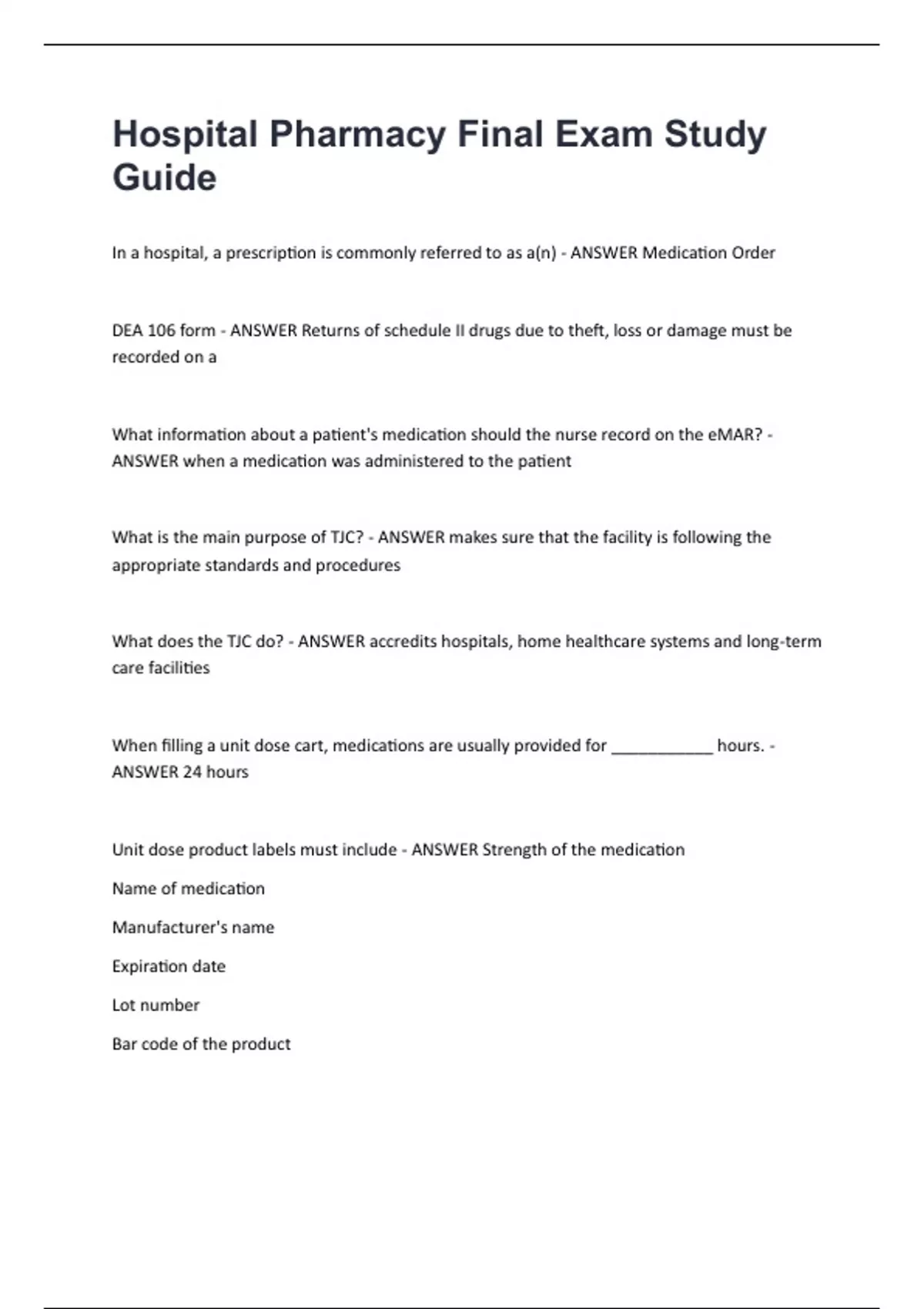 Unit dose product labels must include - ANSWER Strength of the medication