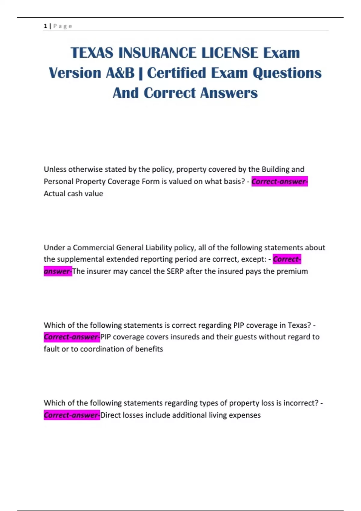 TEXAS INSURANCE LICENSE Exam