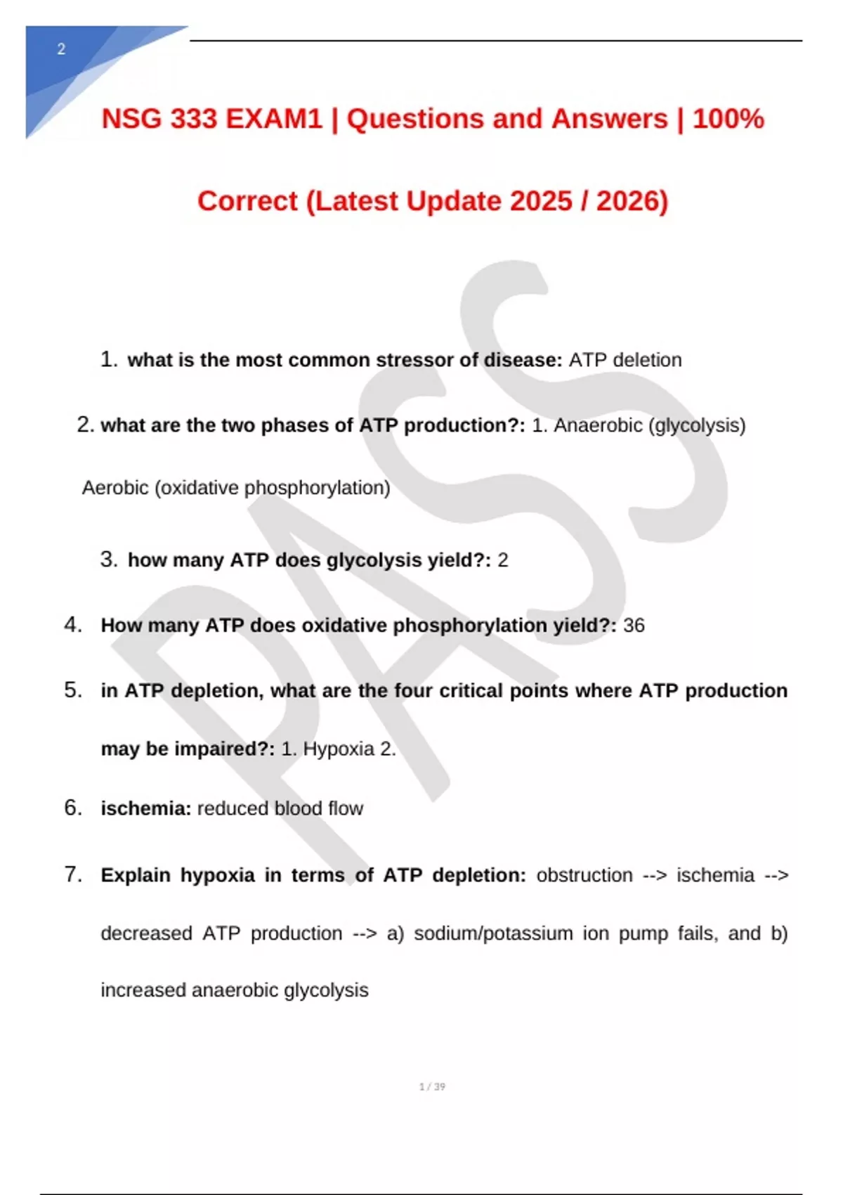 NSG 333 EXAM1 | Questions and Answers | 100%