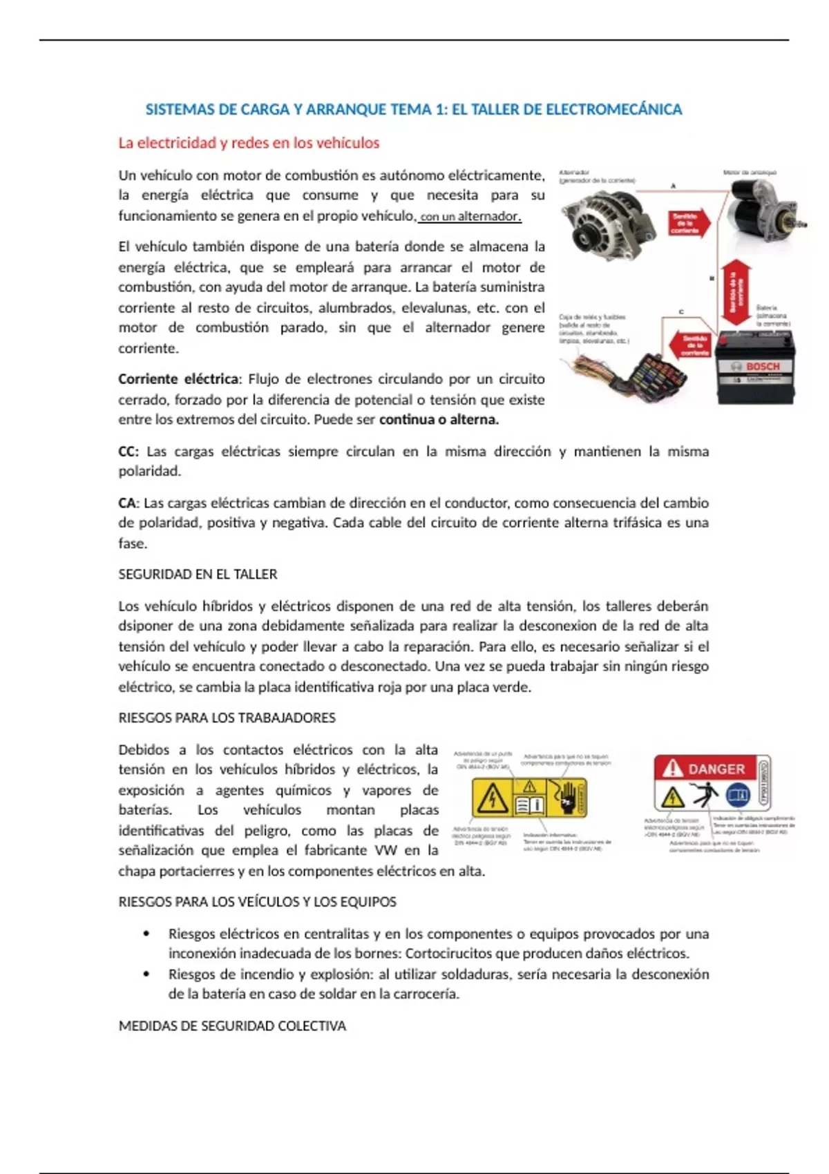 SISTEMAS DE CARGA Y ARRANQUE TEMA 1: EL TALLER DE ELECTROMECÁNICA