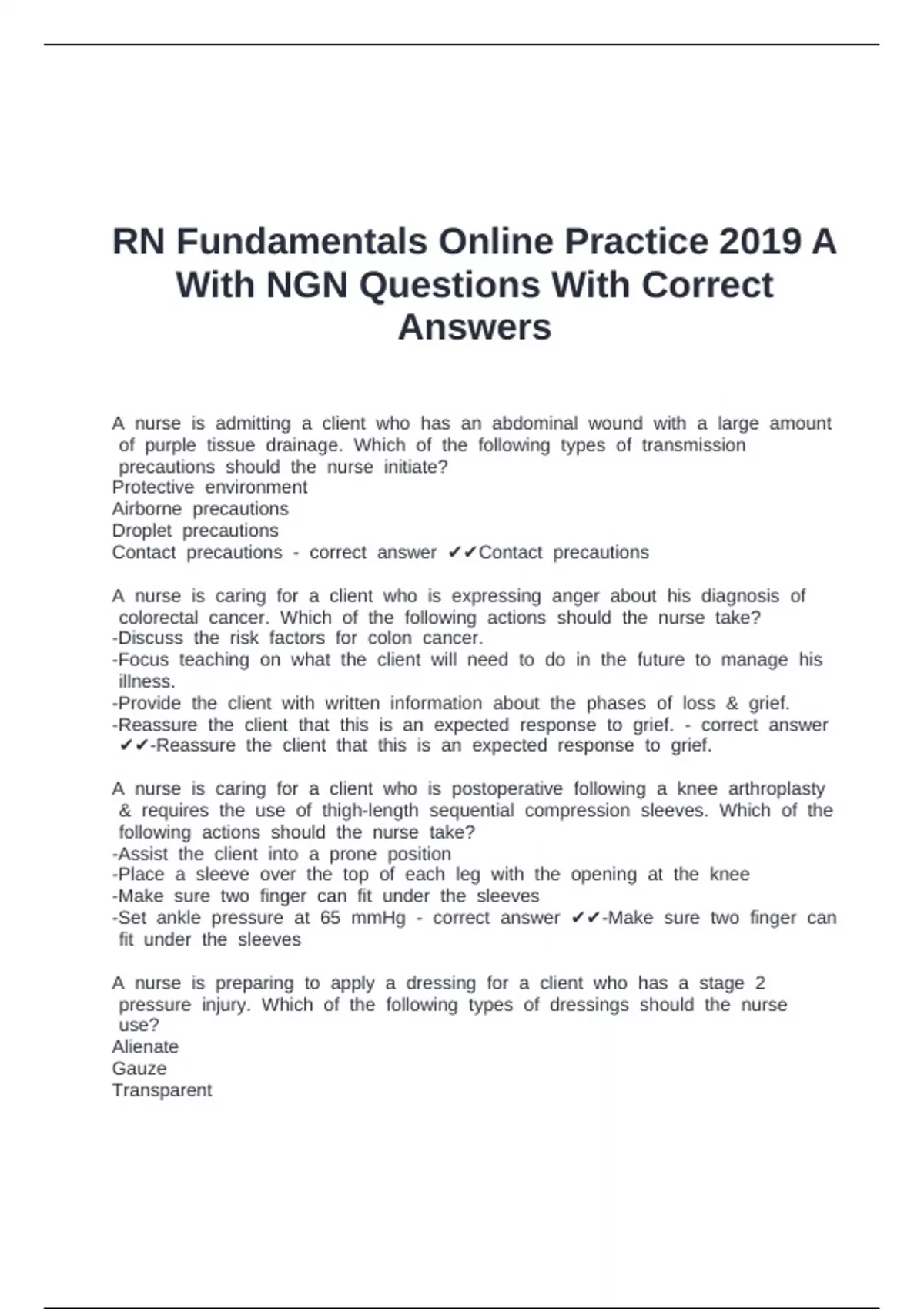 With NGN Questions With Correct