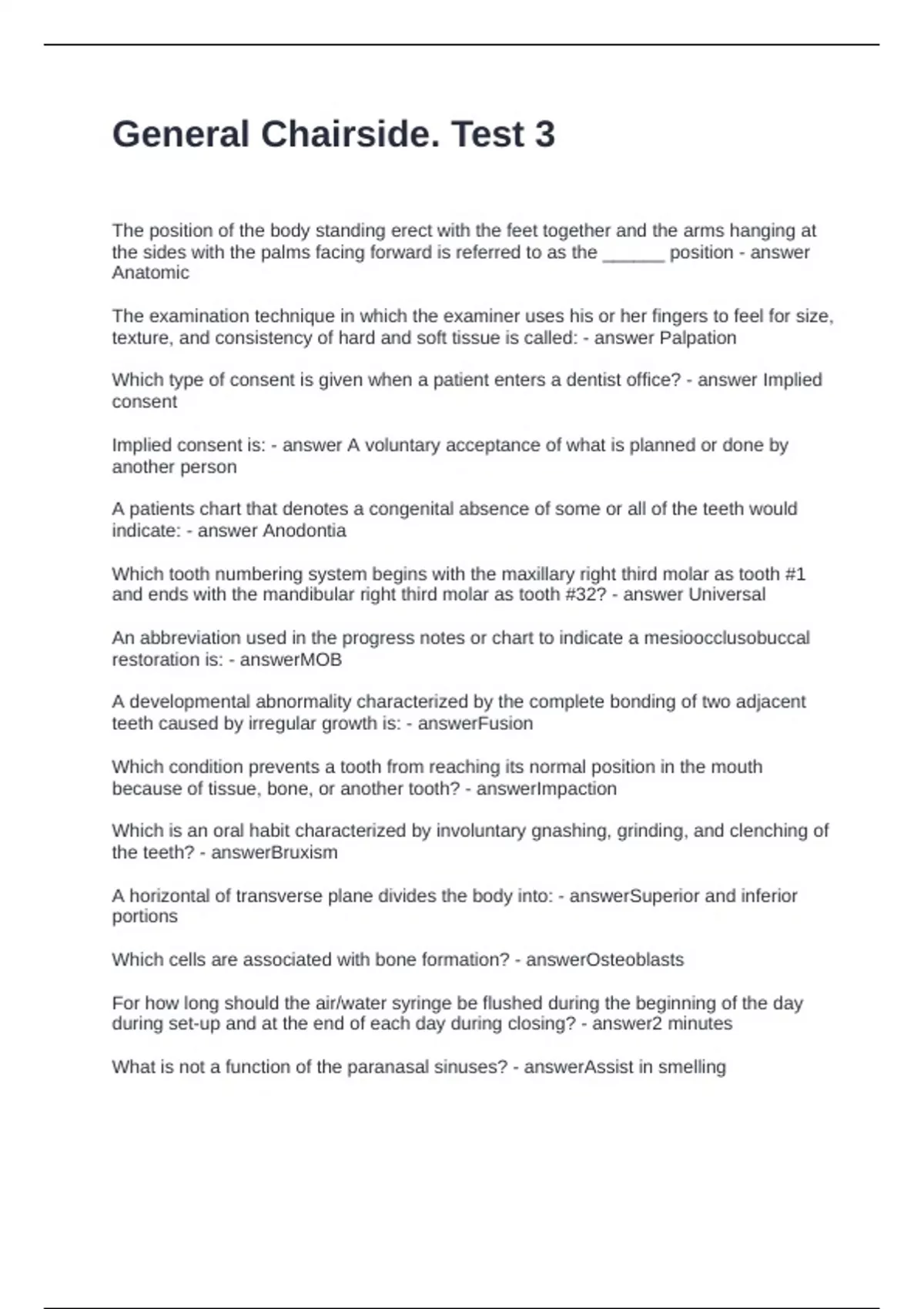 General Chairside. Test 3