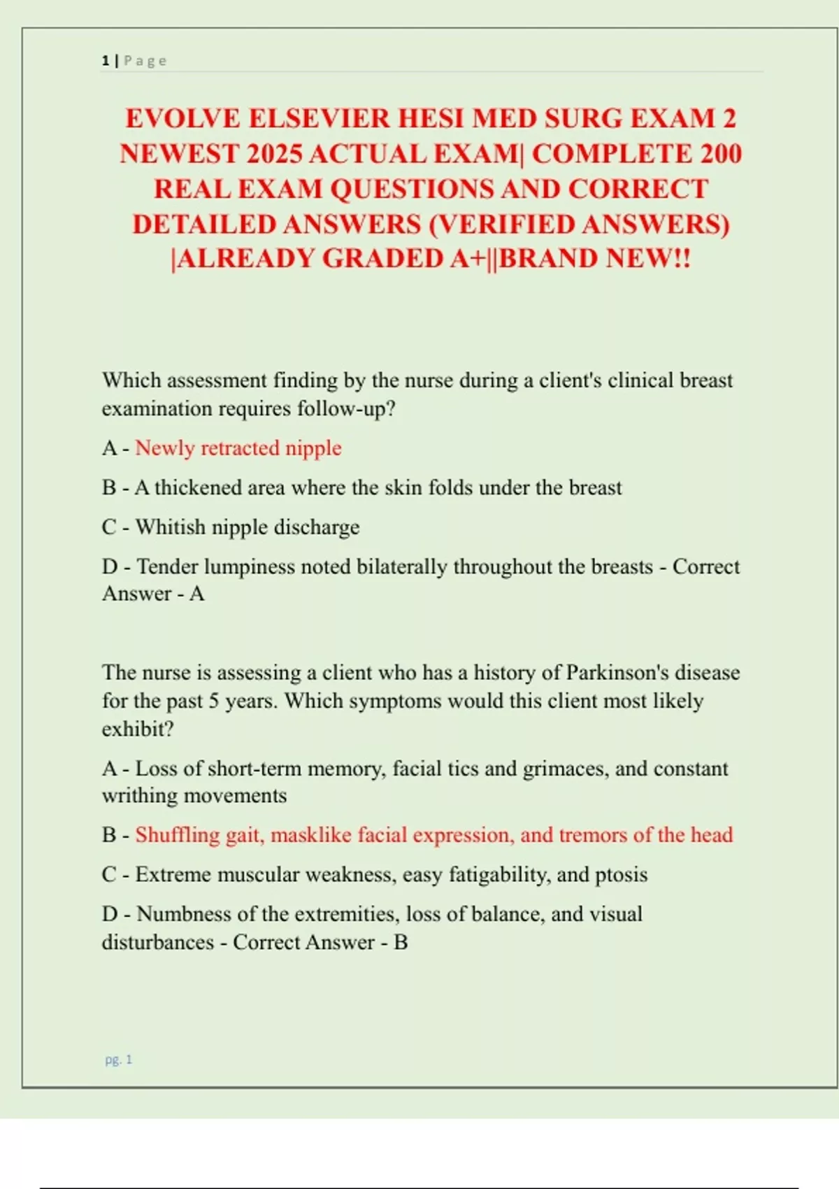 EVOLVE ELSEVIER HESI MED SURG EXAM 2