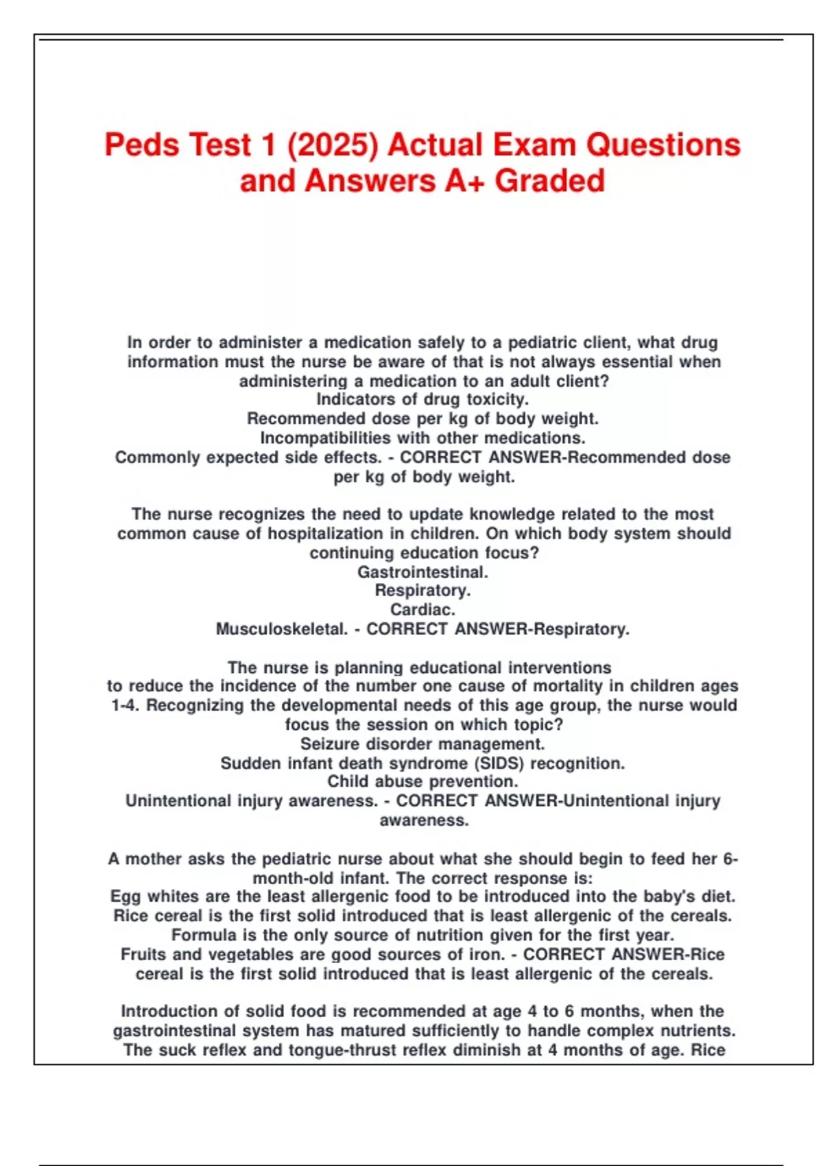 Peds Test 1 (2025) Actual Exam Questions and Answers A+ Graded.