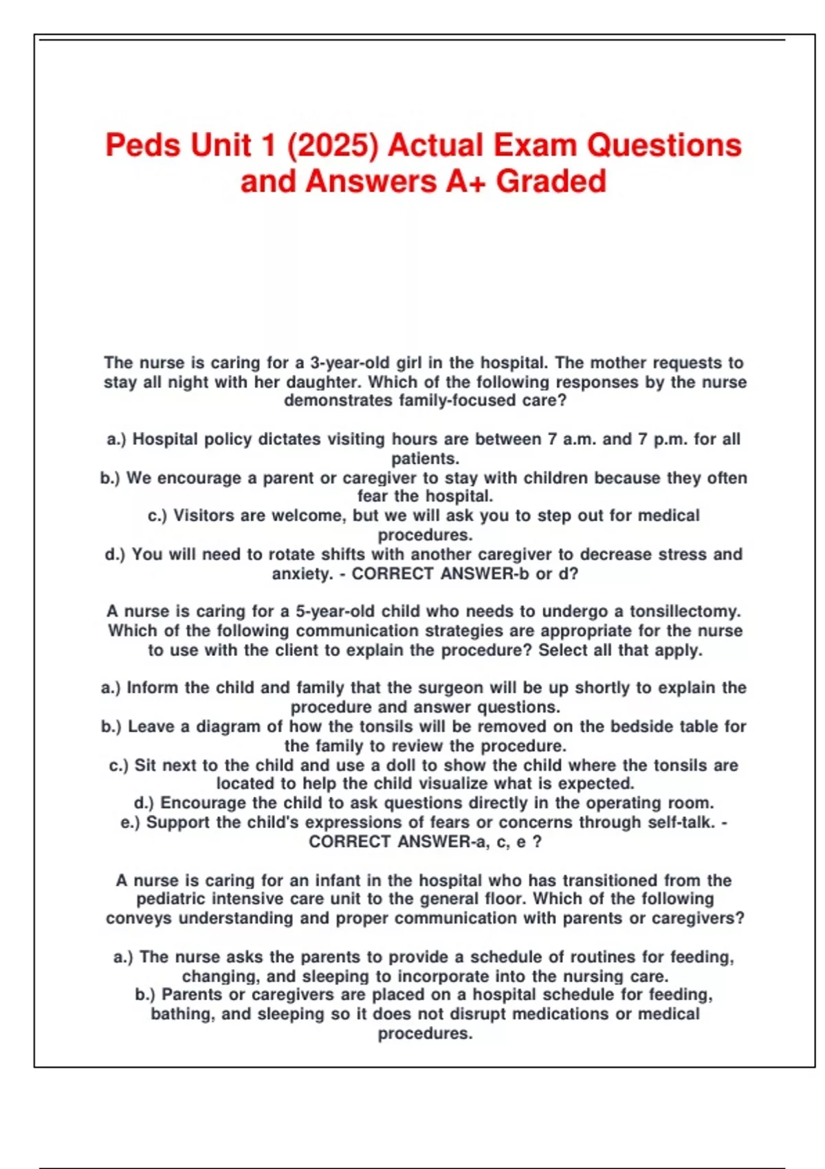 Peds Unit 1 (2025) Actual Exam Questions