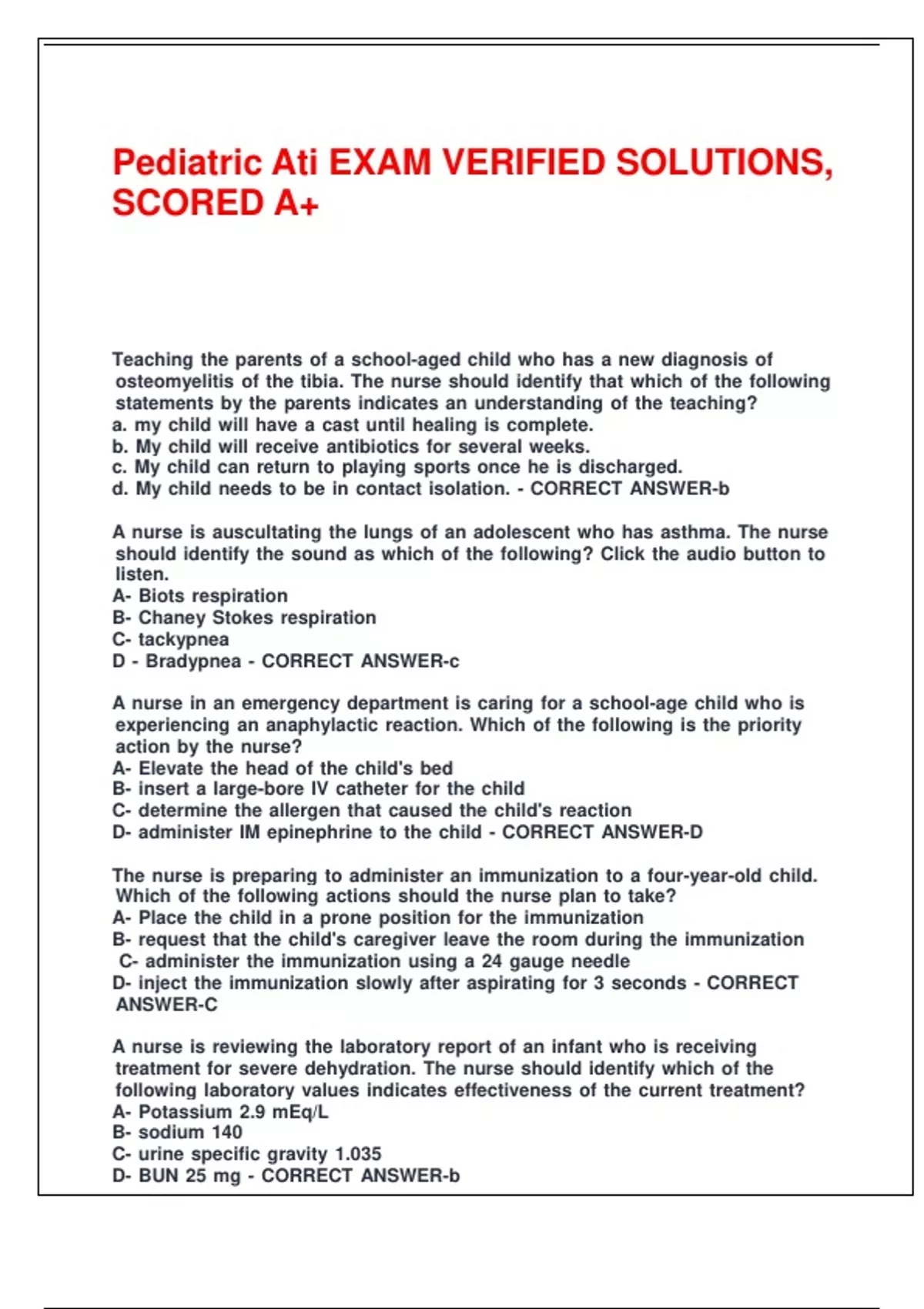 Pediatric Ati EXAM VERIFIED SOLUTIONS,