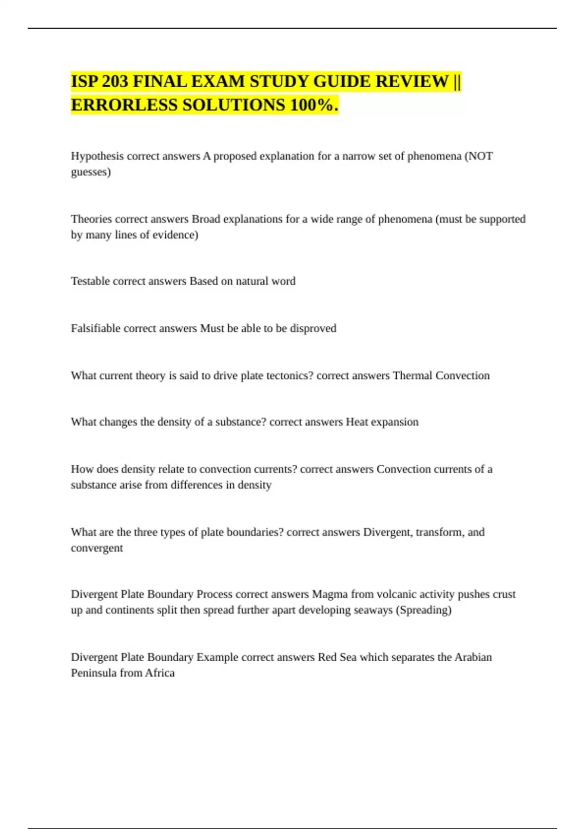 Falsifiable correct answers Must be able to be disproved
