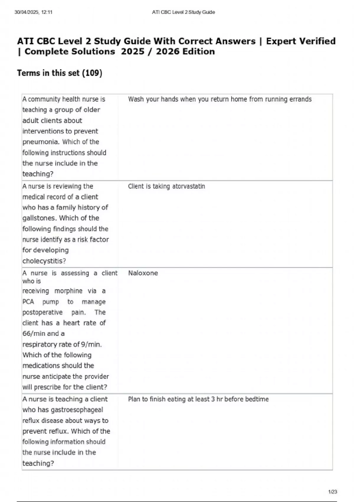 ATI CBC LEVEL 2 STUDY GUIDE EXAM 2025/2026| EXPERT VERIFIED| COMPLETE SOLUTIONS GRADED A+|
