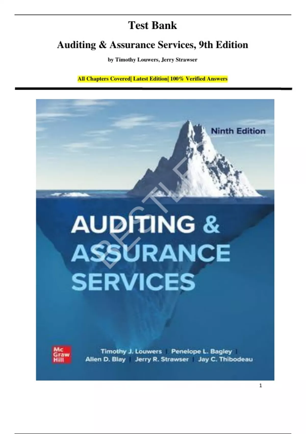Test Bank Auditing & Assurance Services, 9th Edition by Timothy Louwers, Jerry Strawser All Chapters Covered| Latest Edition| 100% Verified Answers