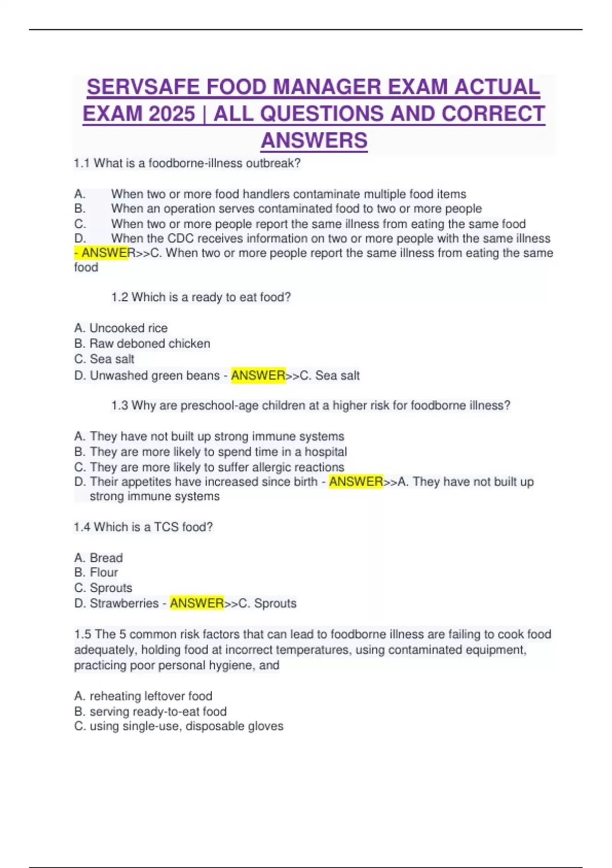 SERVSAFE FOOD MANAGER EXAM ACTUAL