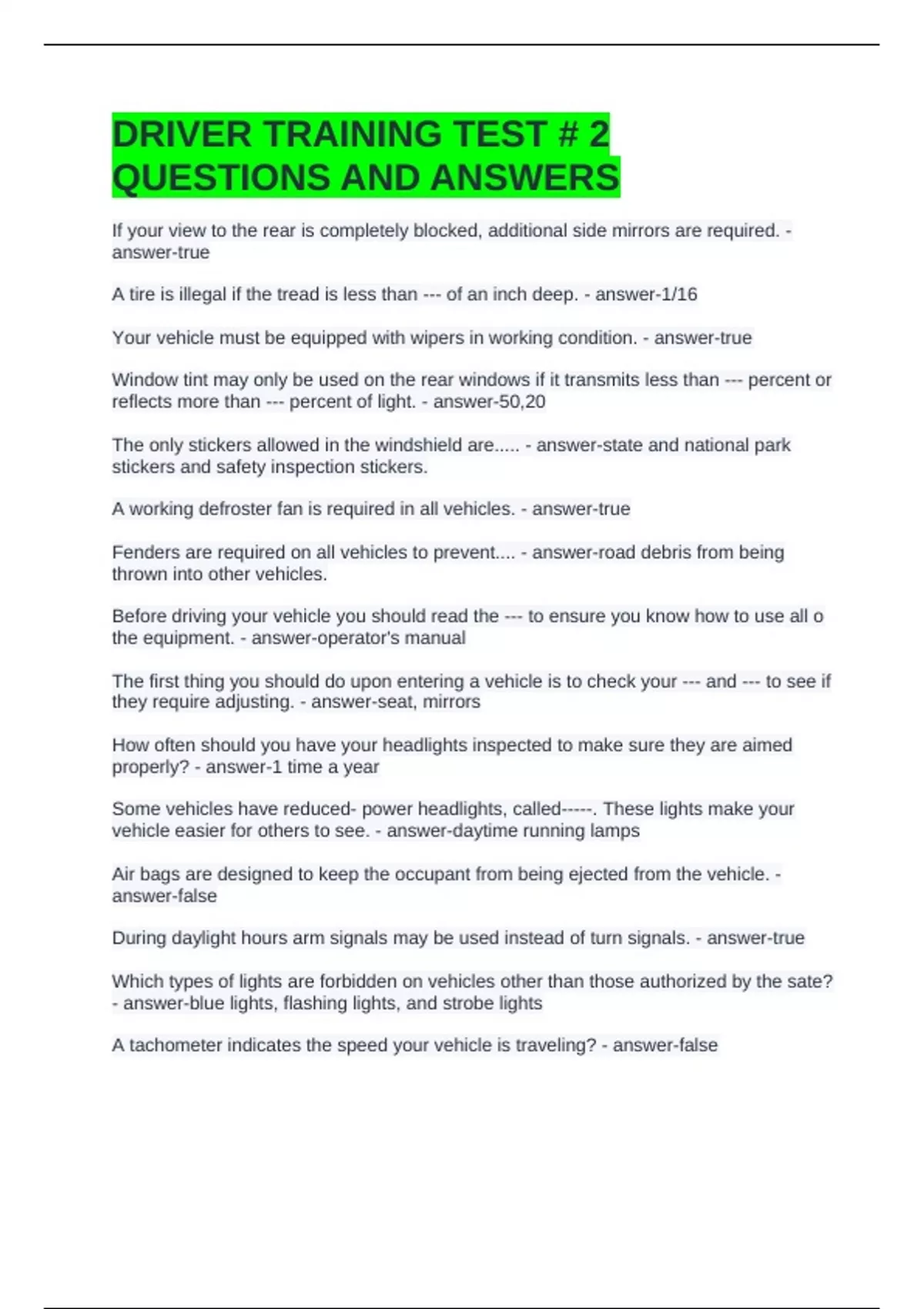 DRIVER TRAINING TEST # 2