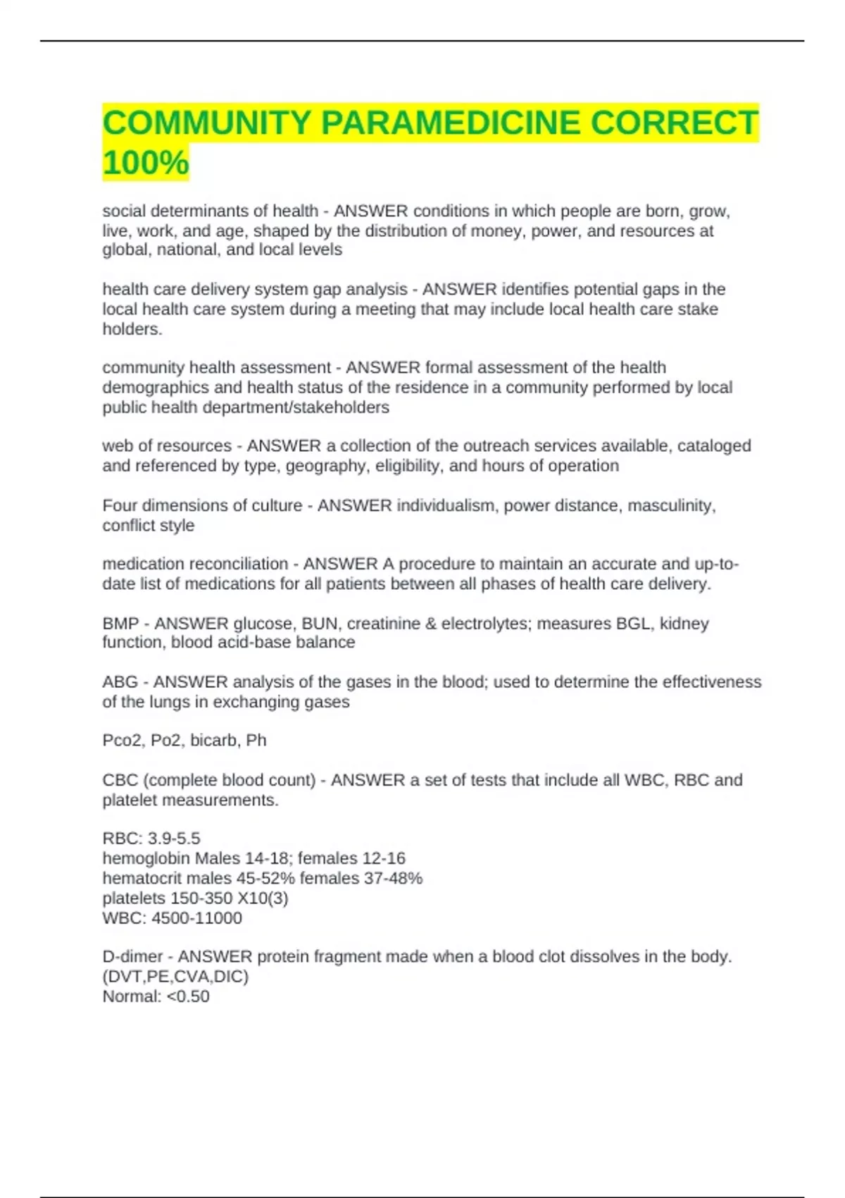 community health assessment - ANSWER formal assessment of the health