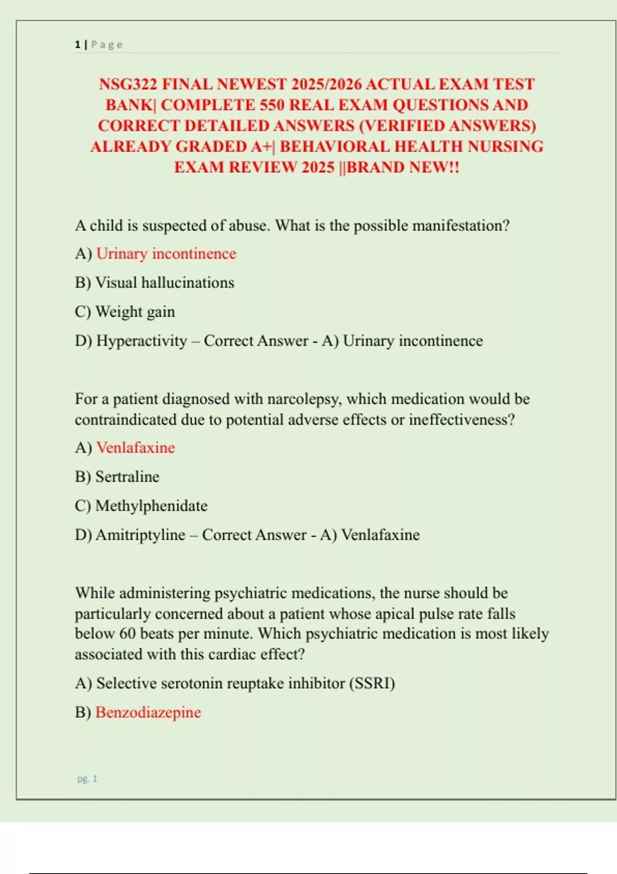 ALREADY GRADED A+| BEHAVIORAL HEALTH NURSING