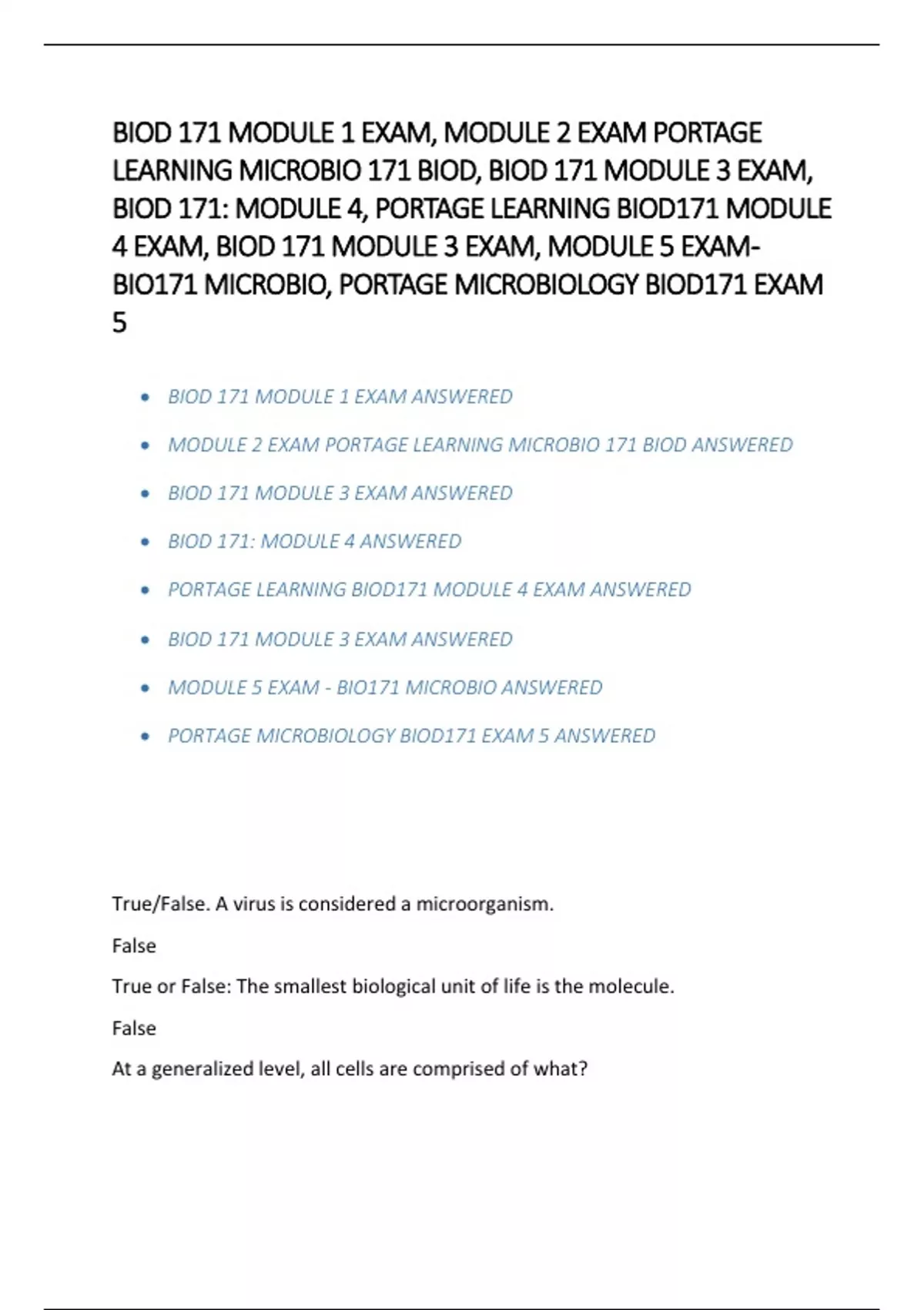 BIOD 171 MODULE 1 EXAM ANSWERED