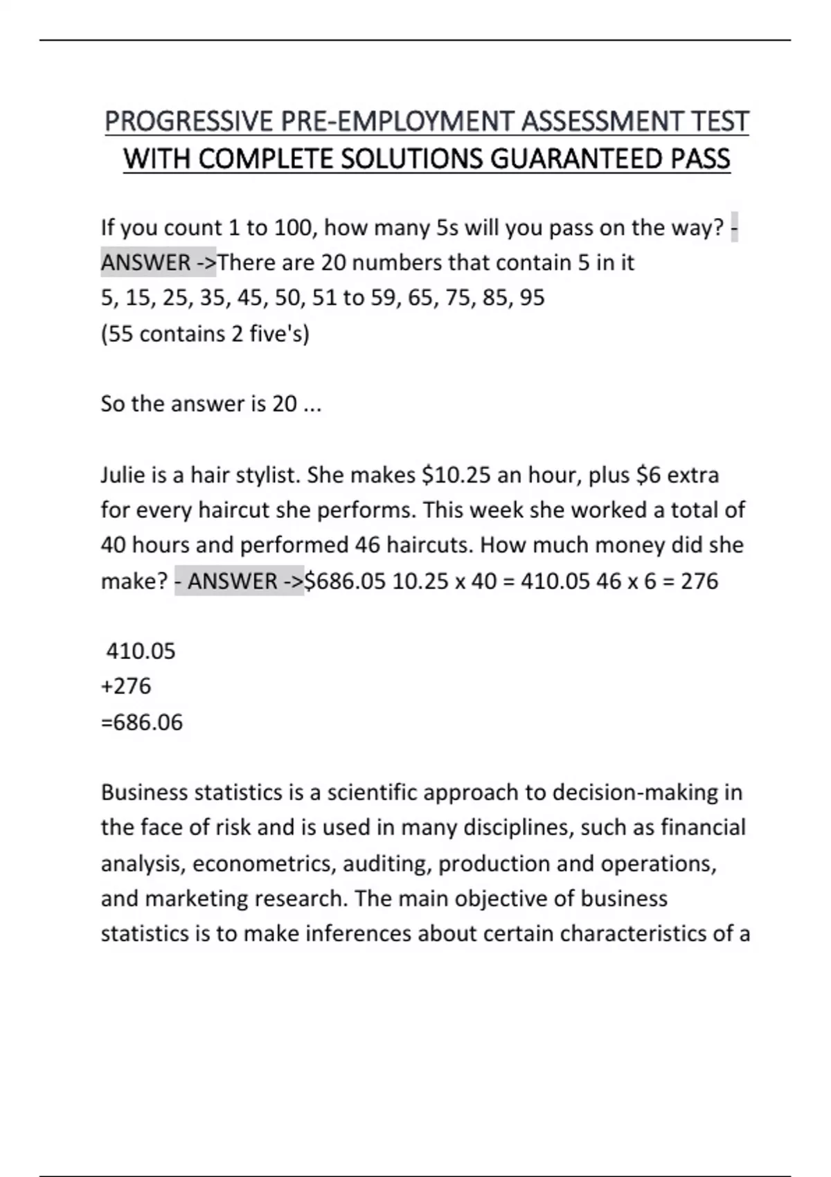 PROGRESSIVE PRE-EMPLOYMENT ASSESSMENT TEST