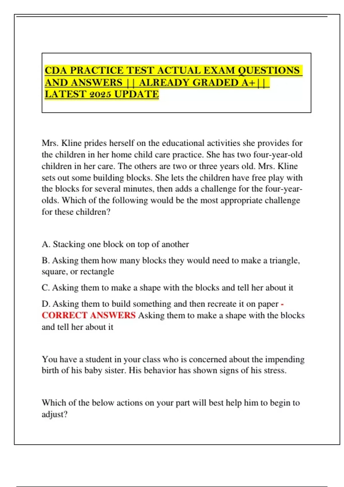 CORRECT ANSWERS Asking them to make a shape with the blocks
