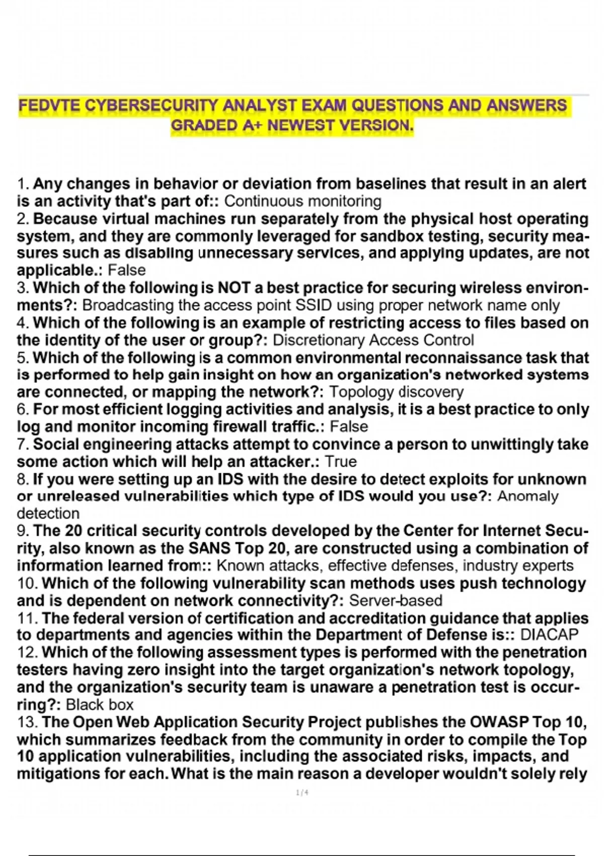 FEDVTE CYBERSECURITY ANALYST EXAM QUESTIONS AND ANSWERS GRADED A+ NEWEST VERSION. FEDVTE exam questions cybersecurity analyst exam prep FEDVTE cybersecurity practice test newest FEDVTE exam answers grade A+ FEDVTE questions FEDVTE study guide 2025 pass FEDVTE cybersecurity exam FEDVTE exam answers graded cybersecurity exam latest version FEDVTE test preparation cybersecurity analyst test bank exam questions for FEDVTE A+ graded FEDVTE answers latest FEDVTE cybersecurity questions FEDVTE exam review questions and answers for FEDVTE exam FEDVTE cybersecurity analyst certification practice questions for FEDVTE exam cybersecurity analyst exam guide FEDVTE updated exam content high score FEDVTE exam cybersecurity analyst FEDVTE preparation FEDVTE certification questions pass FEDVTE exam easily best study material for FEDVTE FEDVTE exam simulations tips for FEDVTE cybersecurity exam FEDVTE cybersecurity analyst sample questions