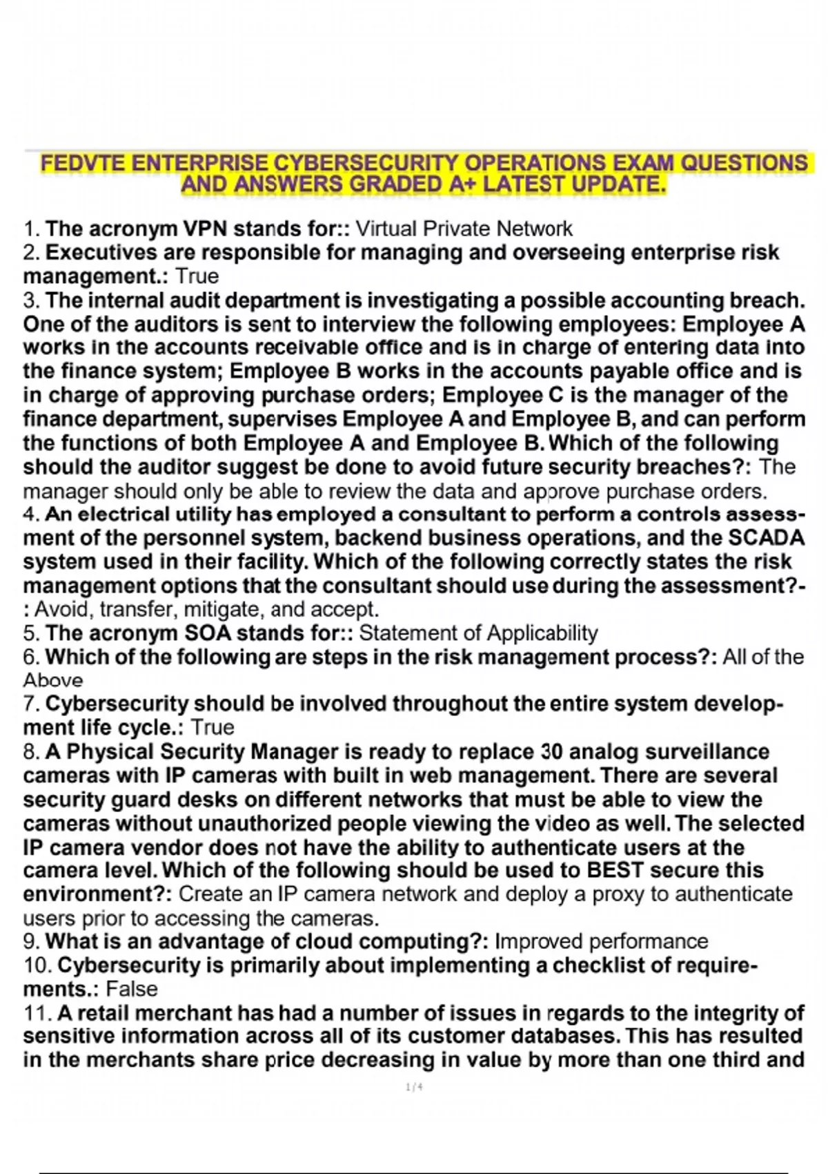 FEDVTE ENTERPRISE CYBERSECURITY OPERATIONS EXAM QUESTIONS AND ANSWERS GRADED A+ LATEST UPDATE. FEDVTE cybersecurity exam enterprise cybersecurity questions cybersecurity operations answers FEDVTE graded A+ exam latest cybersecurity exam update cybersecurity operations certification enterprise cybersecurity test prep FEDVTE exam questions 2025 updated cybersecurity exam answers cybersecurity operations practice test FEDVTE cybersecurity study guide A+ graded cybersecurity exam FEDVTE operations exam prep latest FEDVTE exam questions enterprise cybersecurity test questions cybersecurity operations exam 2025 up-to-date FEDVTE exam answers enterprise cybersecurity exam update FEDVTE test questions and answers A+ cybersecurity operations exam FEDVTE latest exam questions cybersecurity operations test answers FEDVTE exam certification updated FEDVTE exam prep cybersecurity operations graded A+ FEDVTE certification exam update enterprise cybersecurity study material cybersecurity exam graded A+