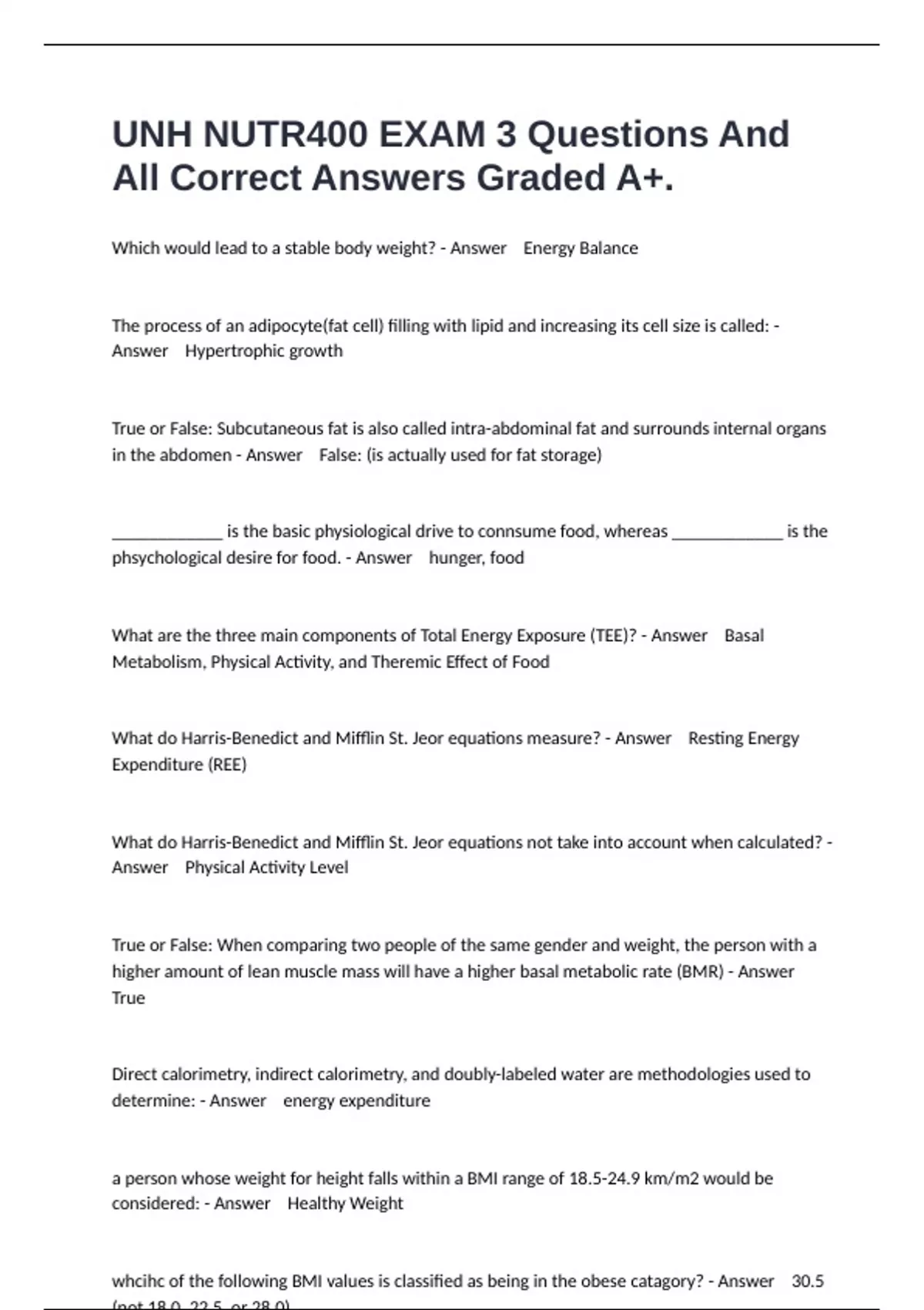 What do Harris-Benedict and Mifflin St. Jeor equations measure? - Answer Resting Energy