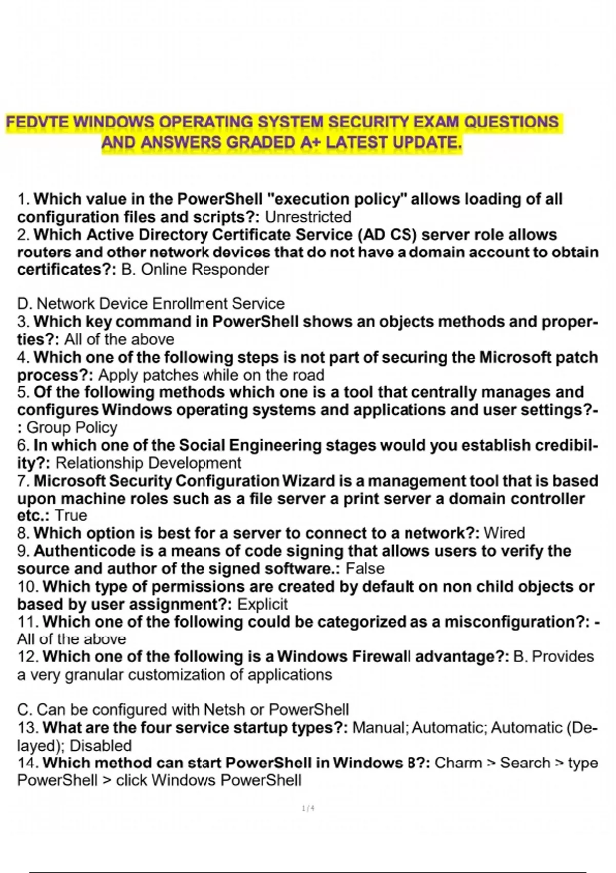 FEDVTE WINDOWS OPERATING SYSTEM SECURITY EXAM QUESTIONS AND ANSWERS GRADED A+ LATEST UPDATE. FEDVTE Windows security exam Windows operating system security questions FEDVTE OS security exam answers Windows security exam graded A+ Latest FEDVTE security exam questions FEDVTE updated exam answers Windows OS security test questions Windows security exam latest update Operating system security FEDVTE FEDVTE Windows exam preparation FEDVTE security exam practice questions Windows security certification questions A+ graded operating system security exam Windows operating system exam practice FEDVTE security test questions and answers Updated Windows security exam answers OS security exam questions latest update Windows security certification practice test FEDVTE exam questions and answers Latest FEDVTE Windows exam answers Graded A+ Windows security test FEDVTE OS security latest questions Windows security certification preparation FEDVTE security exam study guide Operating system security exam preparation Updated security exam FEDVTE Windows OS security certification practice Windows security questions and answers