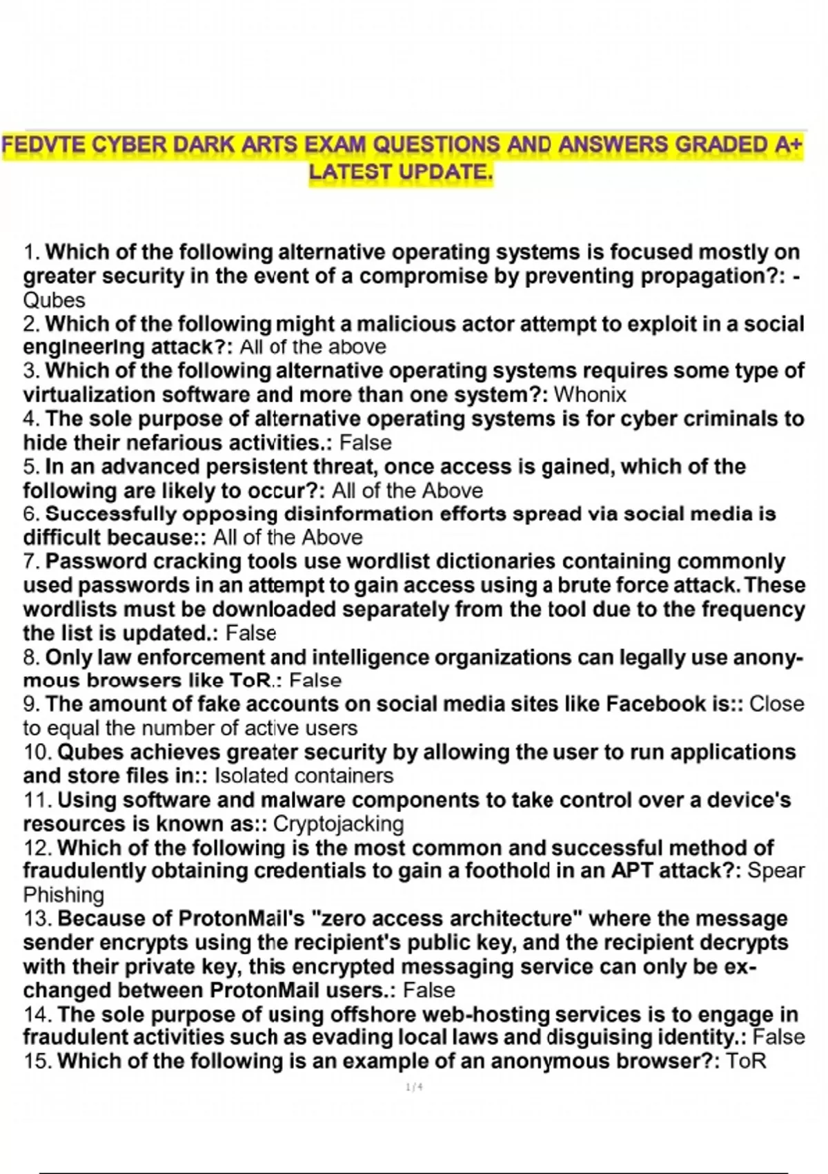 FEDVTE CYBER DARK ARTS EXAM QUESTIONS AND ANSWERS GRADED A+ LATEST UPDATE. FEDVTE exam questions FEDVTE exam answers FEDVTE cyber dark arts cyber dark arts exam prep cyber dark arts study guide latest FEDVTE exam updates grade A+ FEDVTE questions FEDVTE test preparation cyber dark arts course material FEDVTE cyber security exams free FEDVTE practice questions up-to-date cyber dark arts answers pass FEDVTE exams cyber dark arts certification FEDVTE graded exam answers best study tips for FEDVTE FEDVTE comprehensive guide cyber dark arts mock exams ace FEDVTE cyber exams FEDVTE exam cheat sheet cyber dark arts tutorial latest FEDVTE study resources top FEDVTE study materials efficient FEDVTE exam prep advanced cyber dark arts techniques FEDVTE learning resources key topics in cyber dark arts exam pass FEDVTE with high grades cyber dark arts question bank