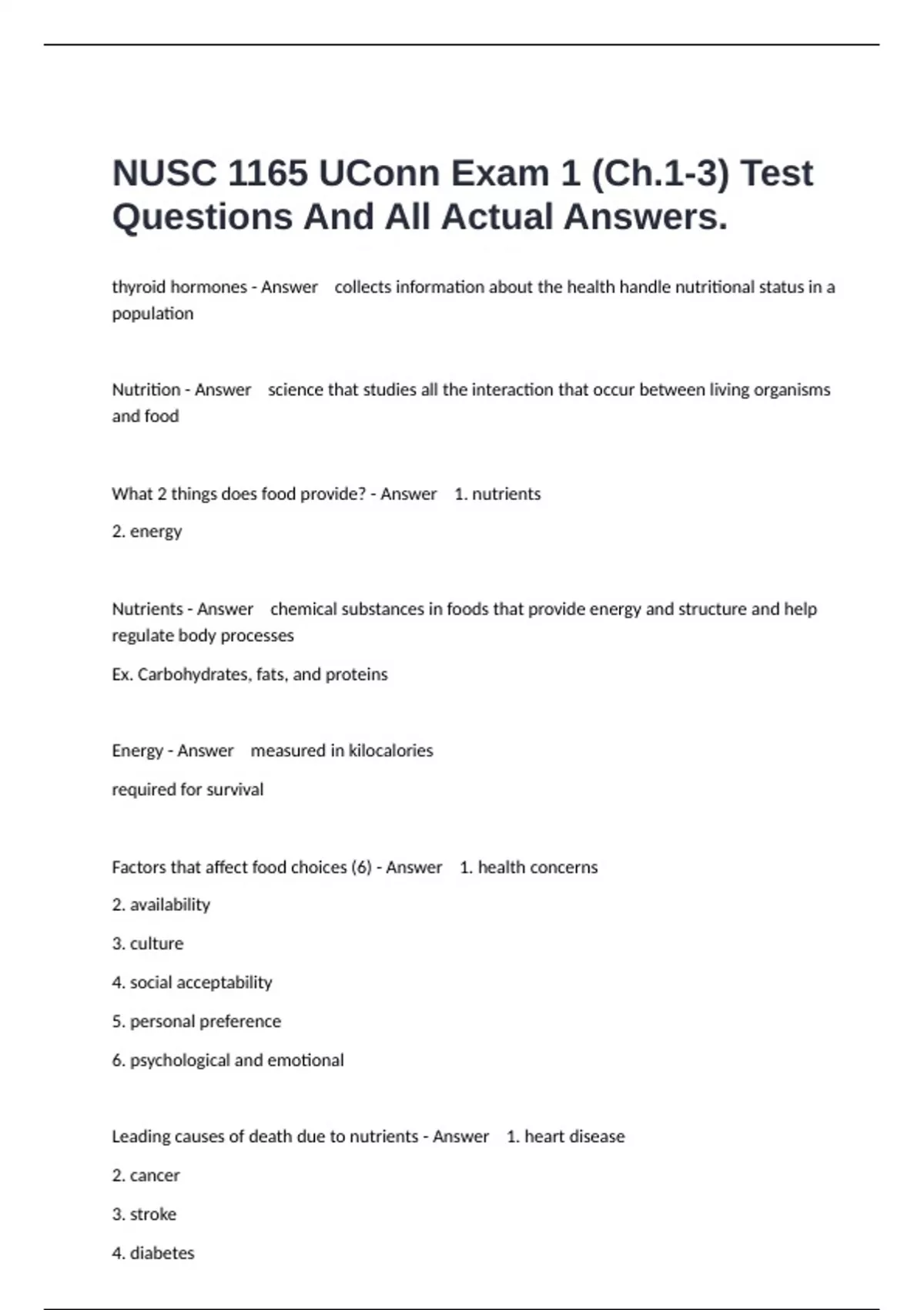 Leading causes of death due to nutrients - Answer 1. heart disease