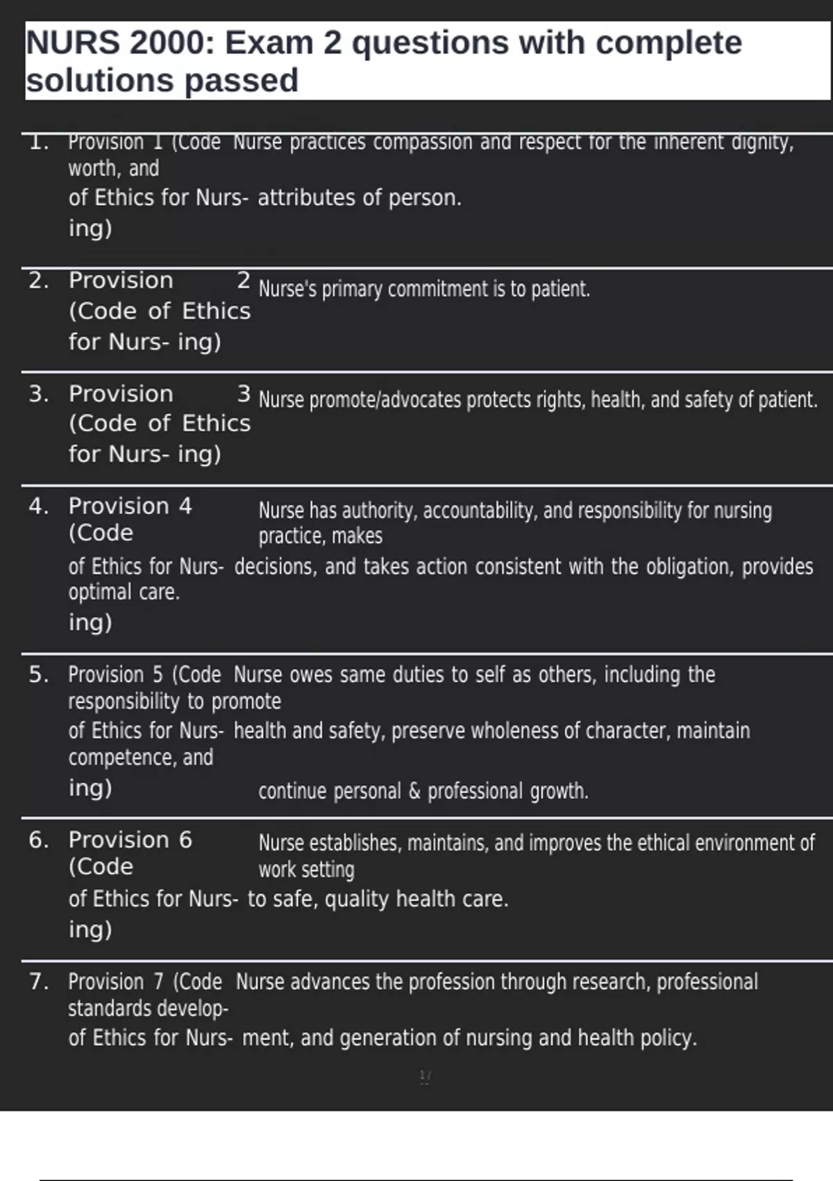 1. Provision 1 (Code Nurse practices compassion and respect for the inherent dignity,