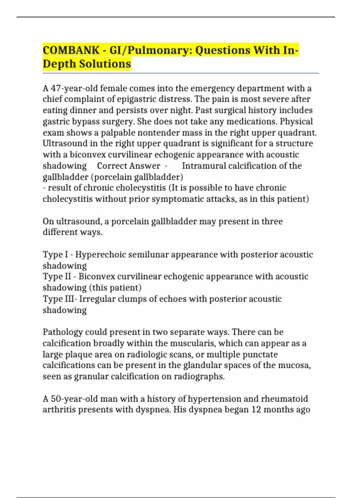 COMBANK - GI/Pulmonary: Questions With In-Depth Solutions