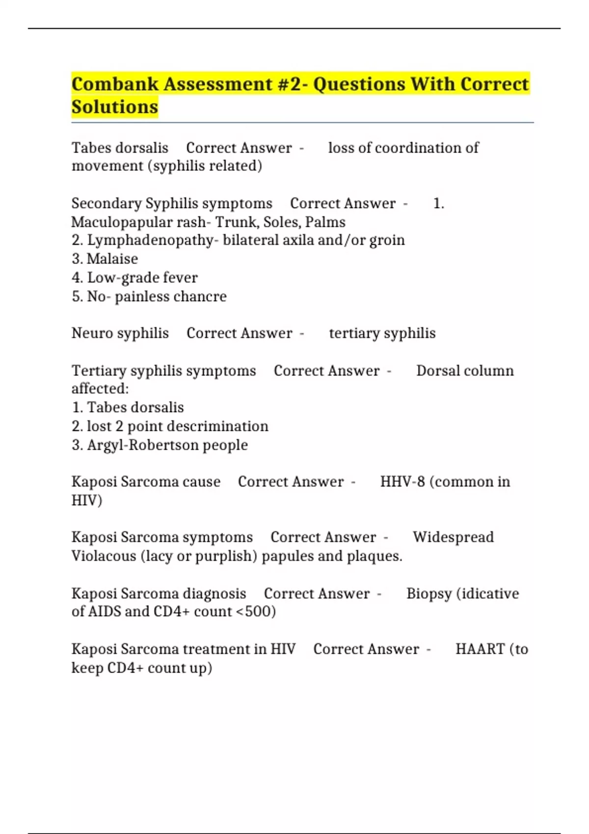 Secondary Syphilis symptoms Correct Answer - 1.