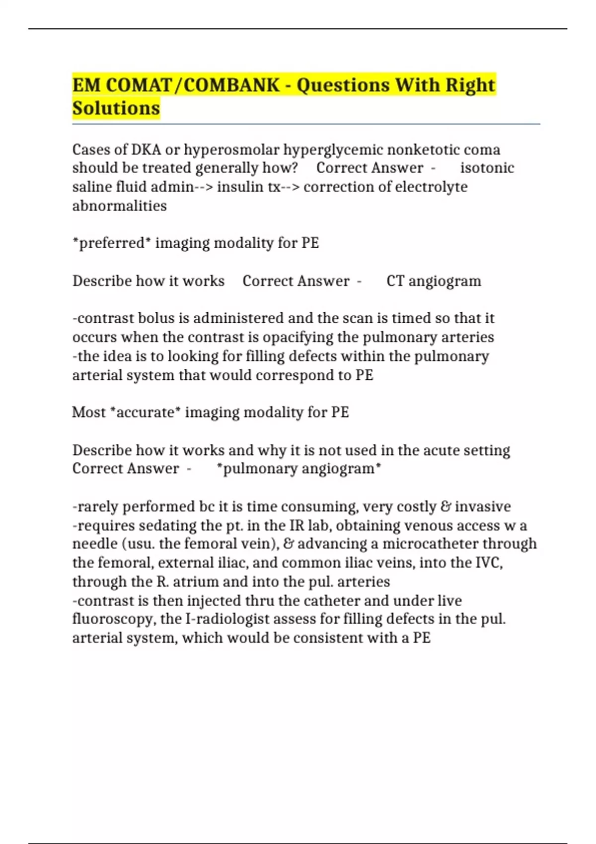 Describe how it works Correct Answer - CT angiogram