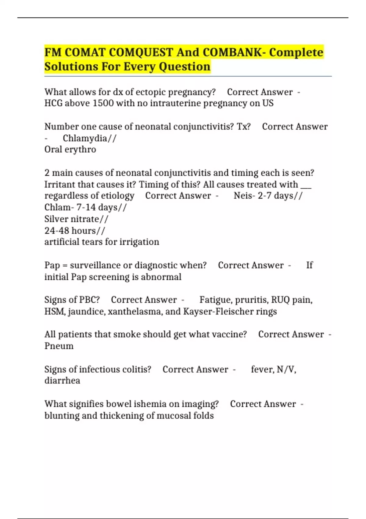Signs of PBC? Correct Answer - Fatigue, pruritis, RUQ pain,