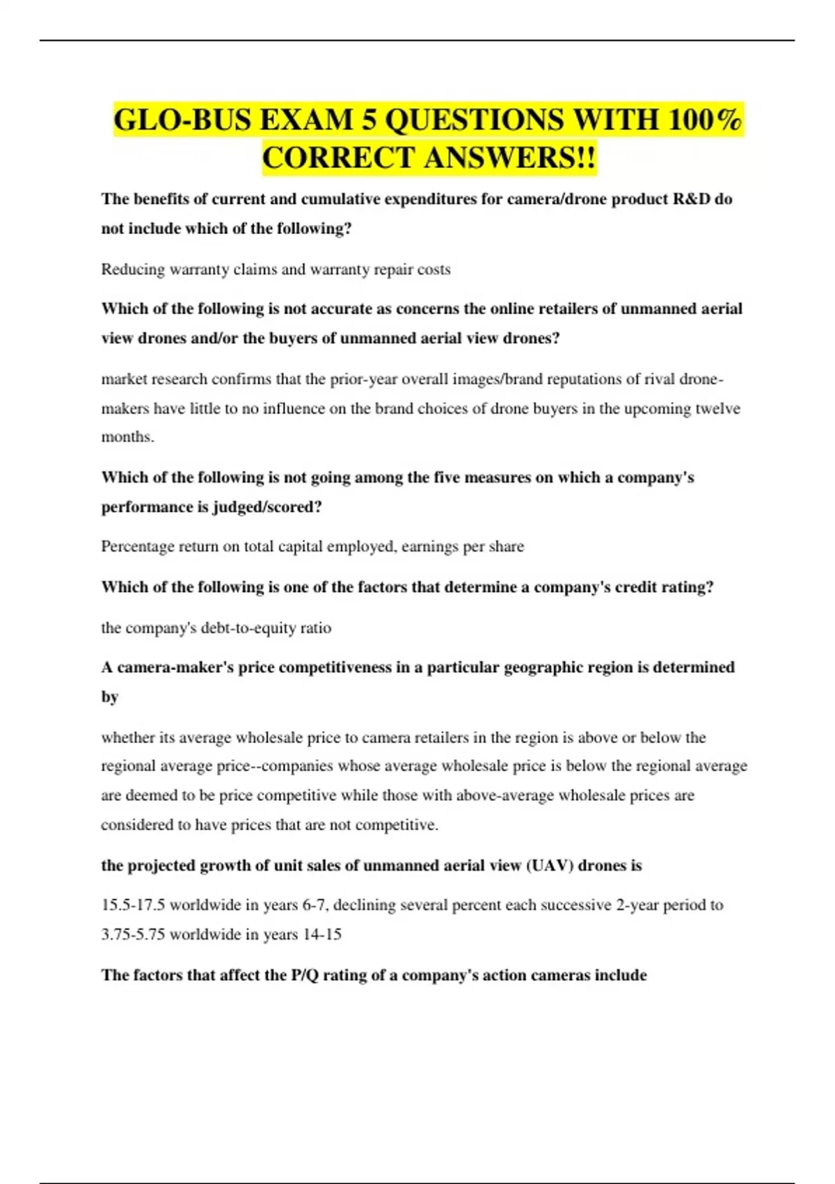GLO-BUS EXAM 5 QUESTIONS WITH 100%