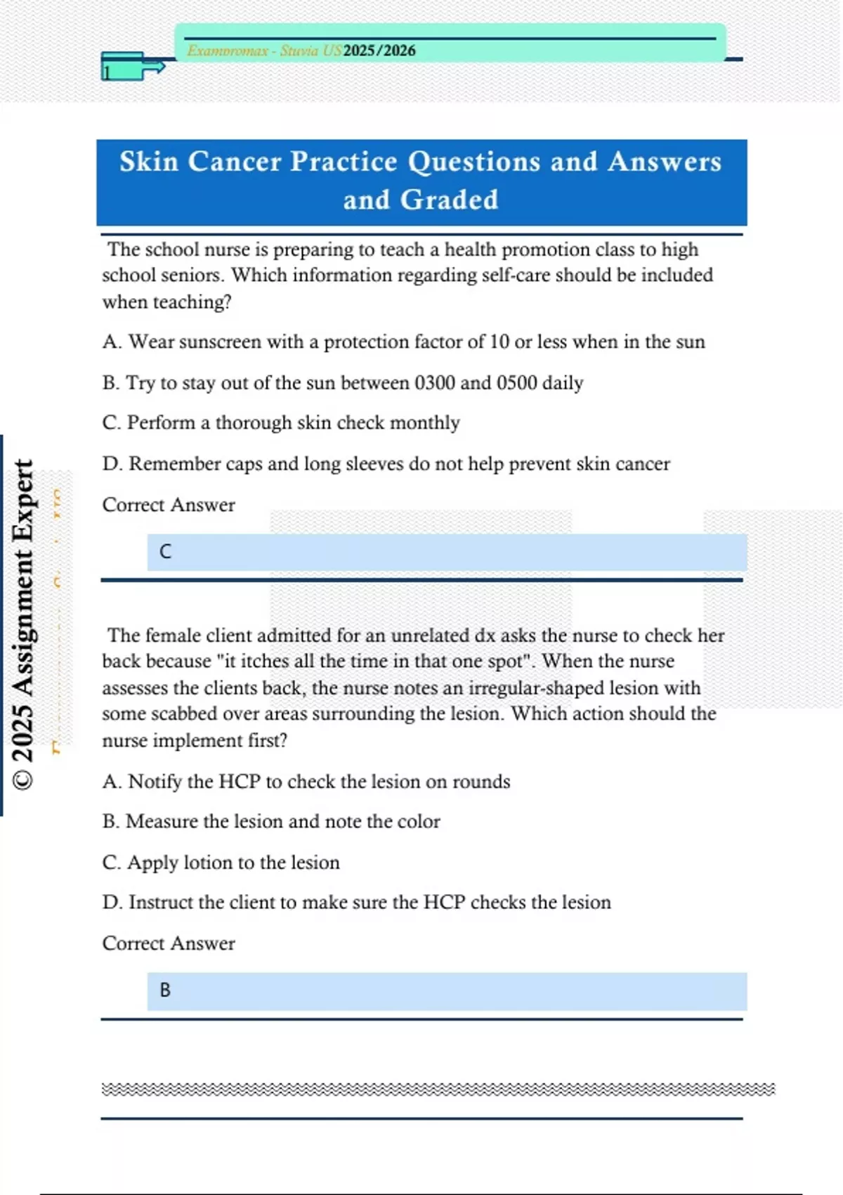 Skin Cancer Practice Questions and Answers