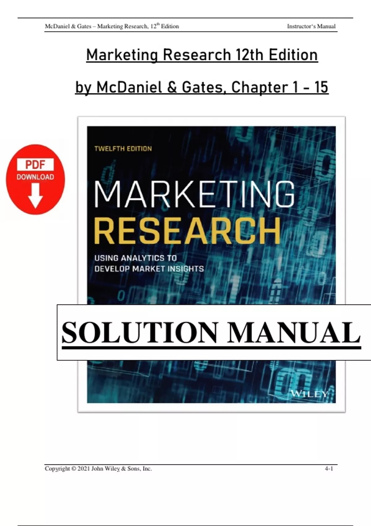 , McDaniel & Gates – Marketing Research, 12th Edition Instructor‘s Manual