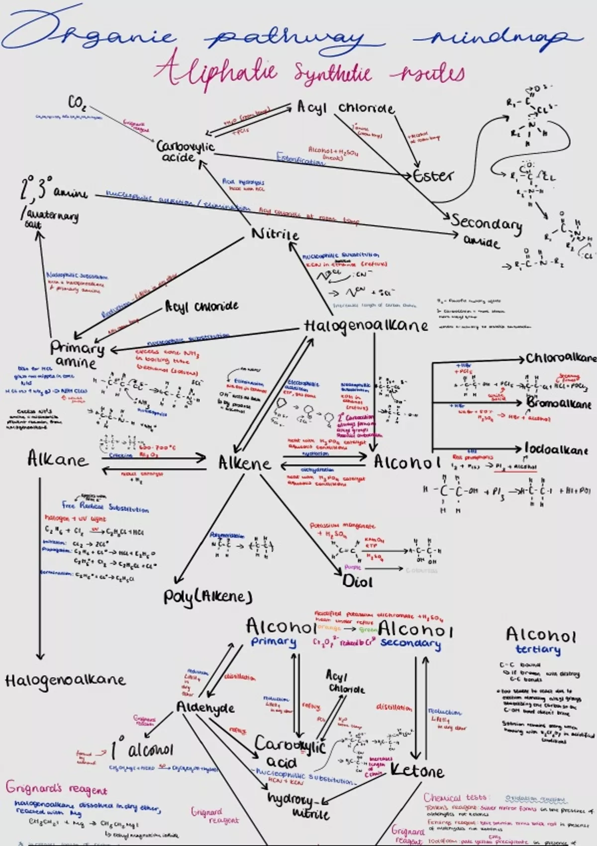 Organic synthesis mindmap, with reagents and conditions and mechanisms