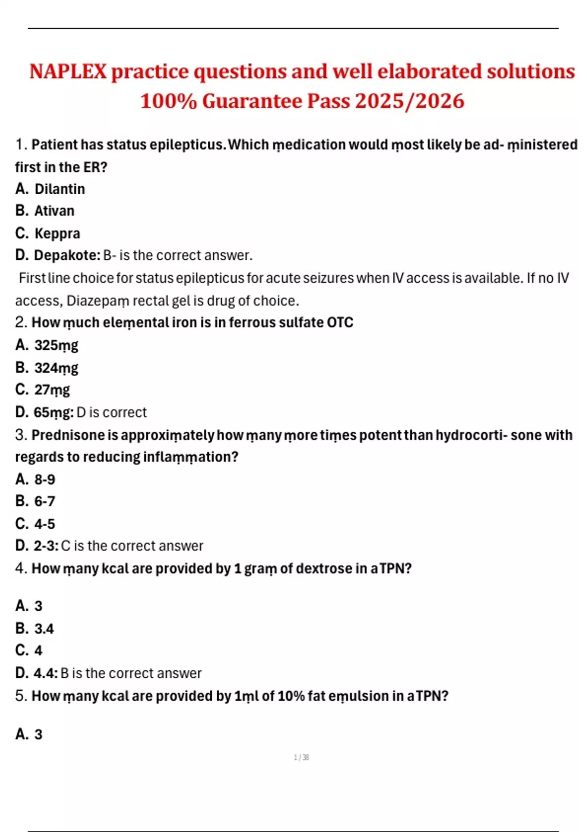 This document offers a detailed collection of NAPLEX practice questions accompanied by well-elaborated, step-by-step solutions tailored to the 2025/2026 exam framework. It covers a wide range of pharmacy topics such as therapeutics, clinical calculations, patient counseling, and drug interactions. Ideal for mastering key concepts and developing critical thinking skills needed to succeed on the NAPLEX.