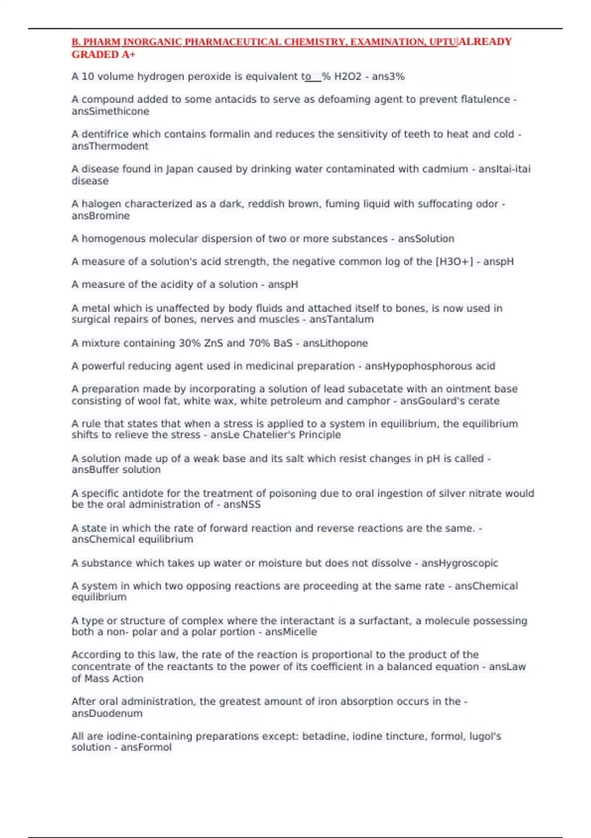 B. PHARM INORGANIC PHARMACEUTICAL CHEMISTRY, EXAMINATION, UPTU|ALREADY