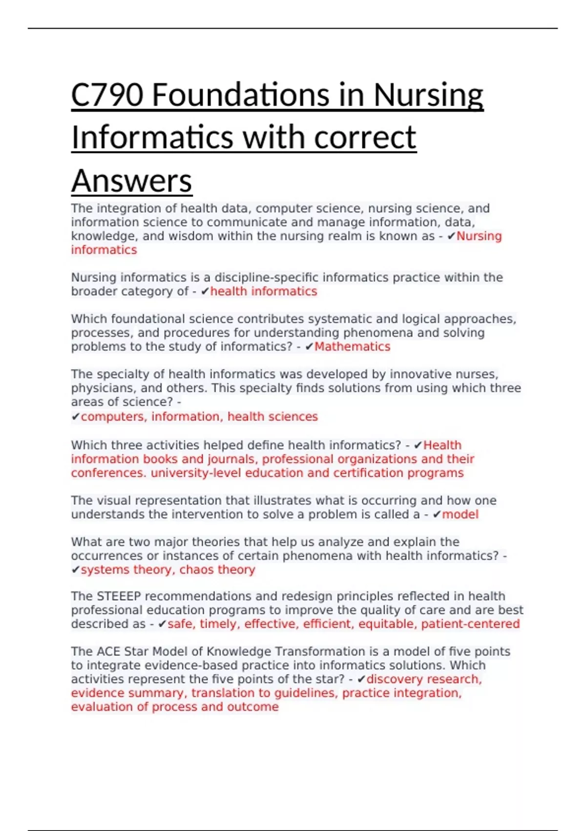C790 Foundations in Nursing Informatics with correct Answers (2).docx