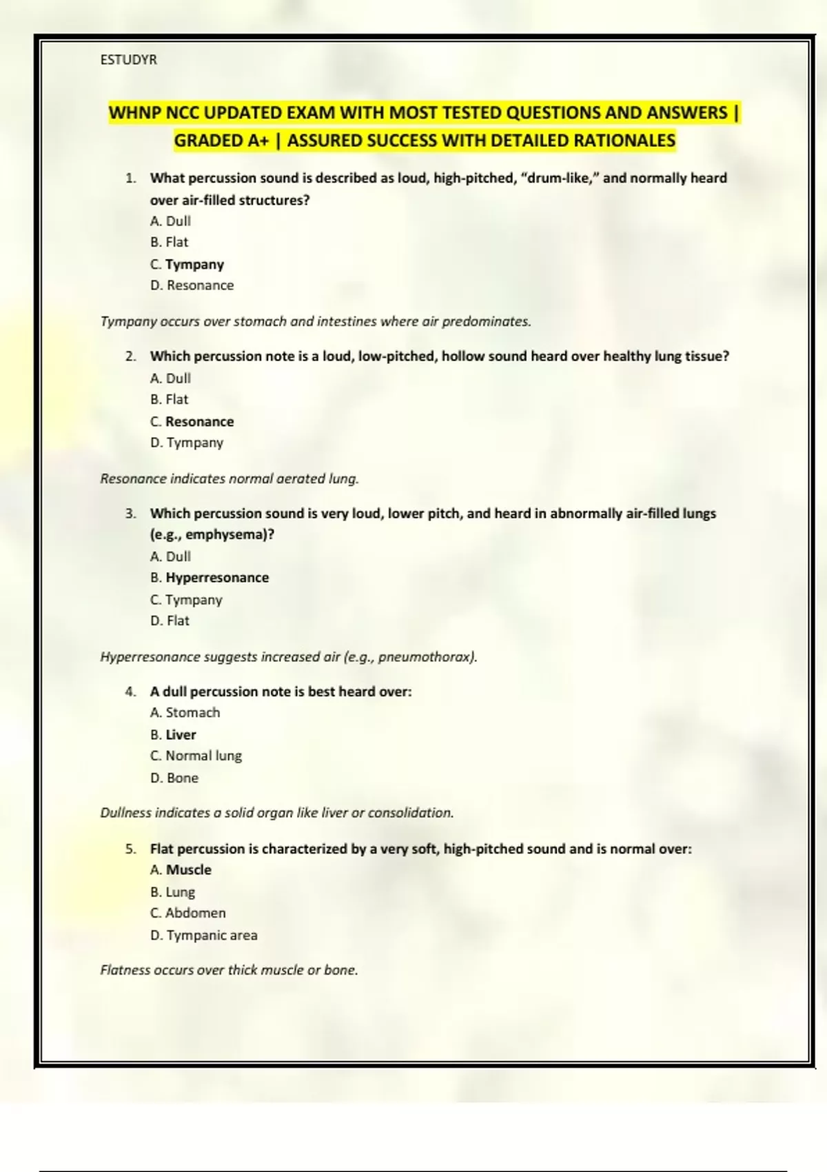 2. Which percussion note is a loud, low-pitched, hollow sound heard over healthy lung tissue?