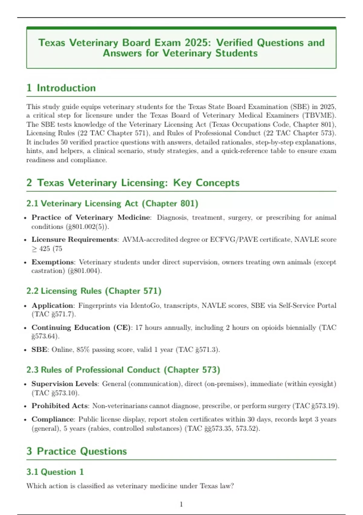 This study guide equips veterinary students for the Texas State Board Examination (SBE) in 2025,