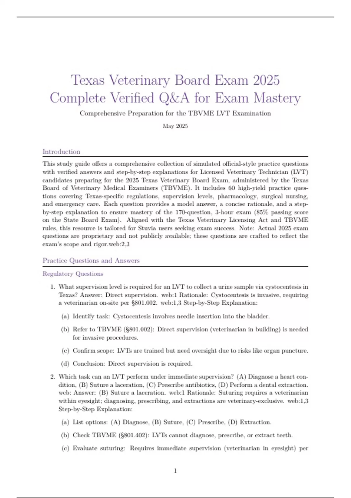 with verified answers and step-by-step explanations for Licensed Veterinary Technician (LVT)