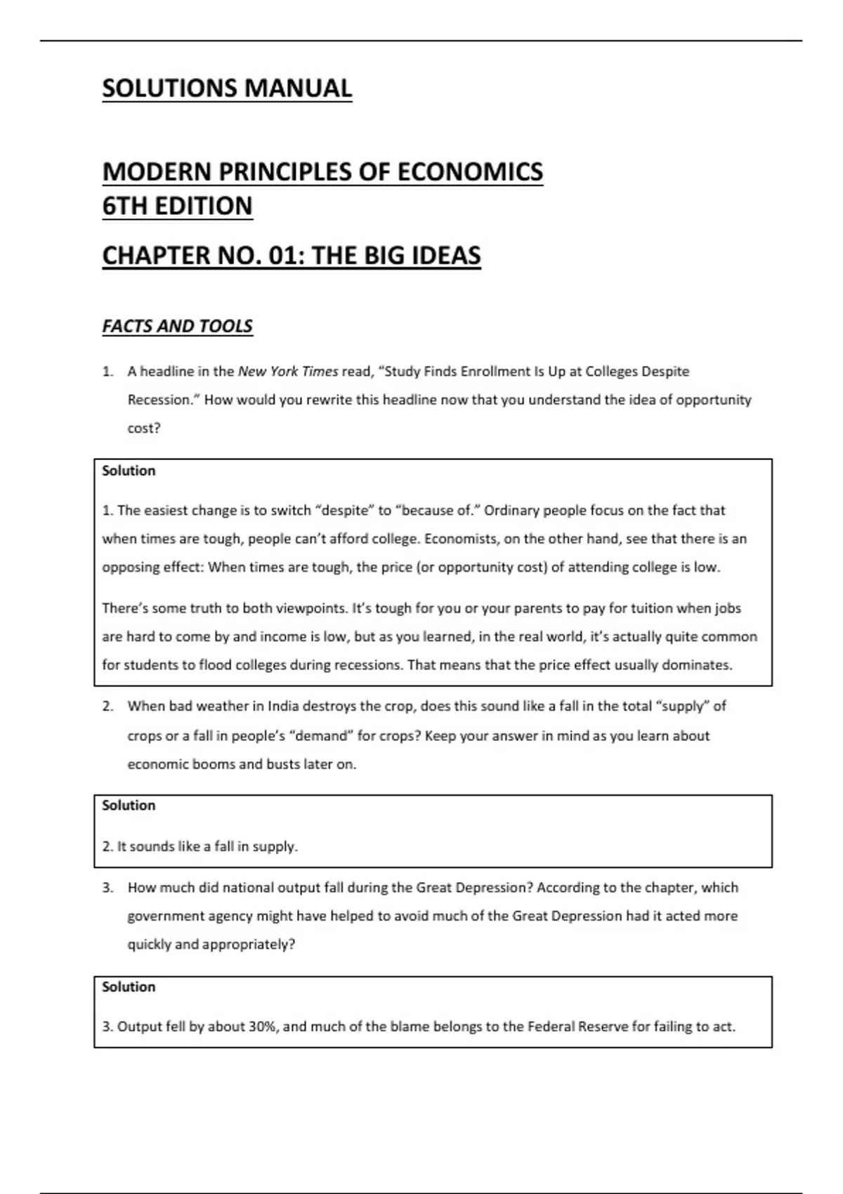 Solutions Manual for Modern Principles of Economics (6th Edition) by Tyler Cowen & Alex Tabarrok – Complete Answers to End-of-Chapter Questions – Solutions for Modern Principles of Economics (6th Edition) by Tyler Cowen and Alex Tabarrok – Solutions Manual For Modern Principles of Economics, 6th Edition by Tyler Cowen, Alex Tabarrok, 9781319421236, Solutions For Economics – This document provides comprehensive, step-by-step solutions to the end-of-chapter questions in Modern Principles of Economics, 6th Edition, by Tyler Cowen and Alex Tabarrok (ISBN: 9781319421236). It covers both microeconomics and macroeconomics topics from all major chapters in the textbook. Ideal for students preparing for exams, homework assignments, or concept revision.