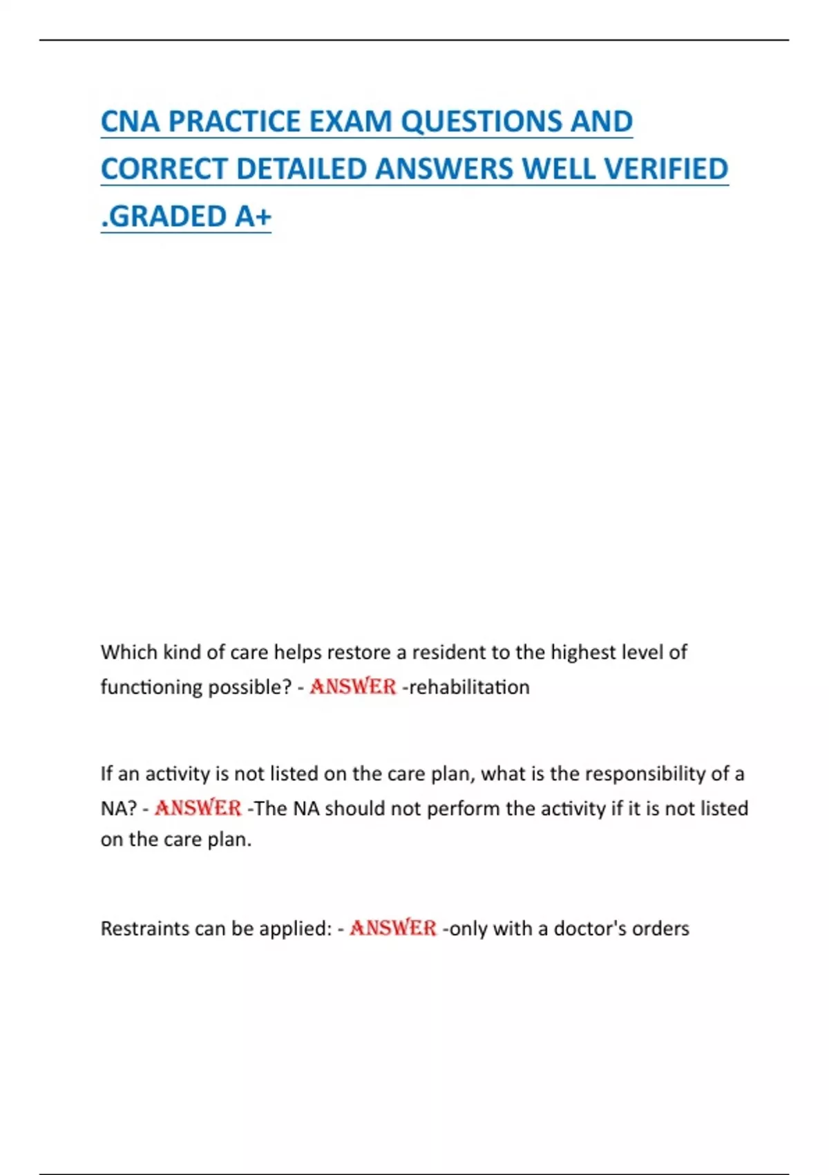 Restraints can be applied: - ANSWER -only with a doctor's orders