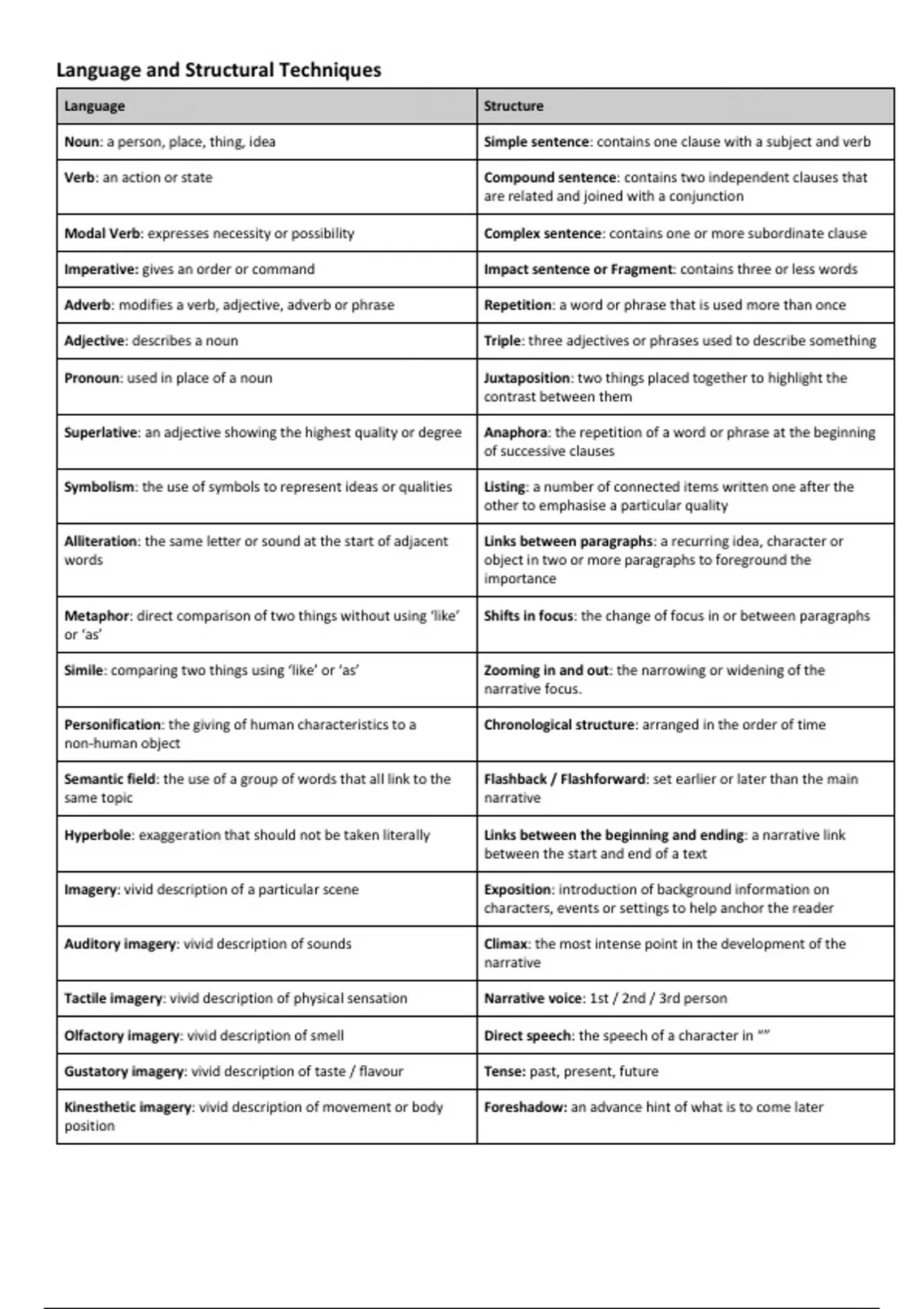 Metaphor​: direct comparison of two things without using ‘like’ Shifts in focus​: the change of focus in or between paragraphs