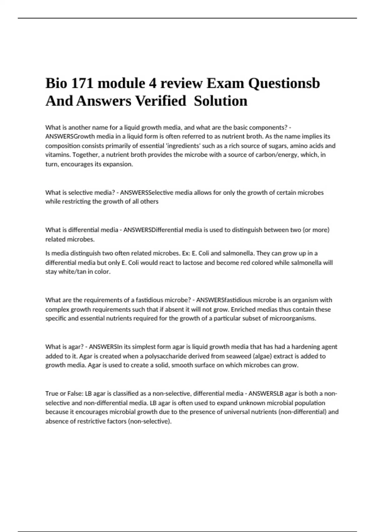 Bio 171 module 4 review Exam Questionsb And Answers Verified Solution